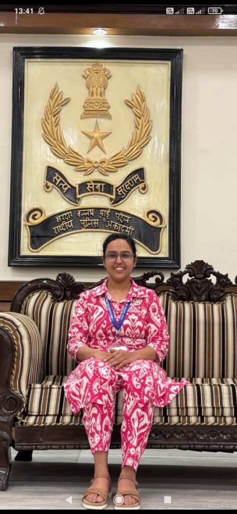 यूपीएससी 2024 में 189 रैंक प्राप्त पूर्वा अग्रवाल राष्ट्रीय पुलिस एकेडमी हैदराबाद में आईपीएस ट्रेनी के रूप में ज्वाइन कर बिलासपुर अंचल का नाम रोशन किया