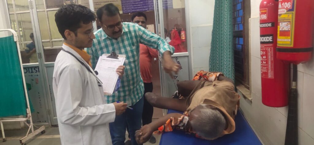 बिलासपुर छत्तीसगढ़। श्रीसूर्या पुष्पा फाउंडेशन के डायरेक्टर गौरव शुक्ला और सुवाड़ी वृद्धाश्रम के संचालक श्याम तिवारी ने एक बार फिर मानवता का उदाहरण पेश किया। पिछले एक महीने से महाराणा प्रताप चौक पर एक बुजुर्ग जीवन और मृत्यु के बीच संघर्ष कर रहा था। दोनों पैर कट चुके इस बुजुर्ग की हालत इतनी दयनीय थी कि उसकी स्थिति को देखकर किसी का भी दिल दहल जाए।