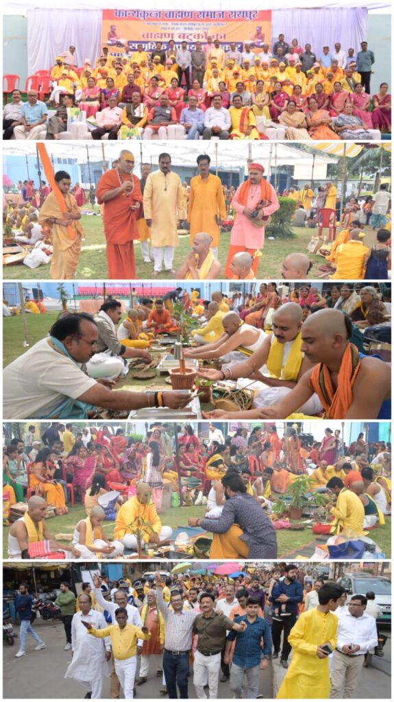 रायपुर। कान्यकुब्ज ब्राह्मण समाज रायपुर द्वारा 19 फरवरी 2025 को आशीर्वाद भवन, बैरन बाजार, रायपुर में आचार्यों की उपस्थिति में वैदिक विधि विधान के साथ सर्व ब्राह्मण समाज के 68 बटुकों का निःशुल्क सामूहिक उपनयन संस्कार सम्पन्न हुआ। देश, प्रदेश के दूर दराज के क्षेत्रों खड़गपुर (प. बंगाल), सतना (म.प्र.), जगदलपुर, मुंगेली, कोरबा, सारंगढ़, कवर्धा आदि स्थानों से ब्राह्मण बटुक अपने अभिभावकों व रिश्तेदारों के साथ जनेऊ करवाने रायपुर पहुँचे। कार्यक्रम में संपूर्ण पूजन सामग्री, भोजन-नाश्ते, आवास की व्यवस्था निःशुल्क रखी गई थी। बटुकों को उपनयन पश्चात् उपहार सामग्री के साथ-साथ प्रमाण पत्र भी प्रदान किये गए। कार्यक्रम में शंकराचार्य आश्रम रायपुर के दाण्डी स्वामी डॉ. इन्दुभावानंद जी ने आकर सभी बटुकों को आशीर्वाद प्रदान किया एवं उपनयन संस्कार के महत्व के विषय में विस्तार से समझाया। समाज के अध्यक्ष पं. अरुण शुक्ल एवं सचिव पं. सुरेश मिश्र ने बताया कि उपनयन संस्कार ब्राह्मणों का एक महत्वपूर्ण संस्कार है, समाज इस दिशा में सदैव प्रयत्नशील रहा है कि संस्कारों के पालन में सभी सजग रहें इस कार्य हेतु सभी ब्राह्मण वर्ग का सहयोग प्राप्त होने से ही कार्यक्रम सफलतापूर्वक सम्पन्न होते हैं। कार्यक्रम को नागपुर से आयी ज्योति अवस्थी, भिलाई से पं. संतोष दीक्षित पं. रविन्द्र मिश्र, पं. रविन्द्र तिवारी भोपाल, पं. रमेशचन्द्र मिश्र मुंबई, पं. प्रदीप मिश्र पं. अजय शुक्ल राजनांदगांव, पं. राजीव अवस्थी बिलासपुर, पं. राजेश त्रिपाठी सरयूपारीण समाज, वर्ल्ड ब्राह्मण फेंडरेशन पं. अरविंद ओझा, पं. योगेश शर्मा अखण्ड ब्राह्मण समाज ने संबोधित करते हुए बटुकों को आशीर्वाद एवं मार्गदर्शन दिया व कान्यकुब्ज ब्राह्मण समाज के इस आयोजन की भूरि-भूरि प्रशंसा की और यह बताया कि कान्यकुब्ज ब्राह्मण समाज वर्ष भर समाज सेवा के कार्य सतत करते आ रहे हैं यह एक प्रशंसनीय एवं अनुकरणीय है। देश प्रदेश में रायपुर कान्यकुब्ज ब्राह्मण समाज का नाम सम्मान के साथ लिया जाता है। आमंत्रण के लिए सभी ने धन्यवाद दिया। इस कार्यक्रम में 68 बटुकों को परिवारजनों के साथ-साथ सभी उपस्थ्ति लगभग 1000 लोगों ने सभी बटुकों को भीखी प्रदान कर आशीर्वाद दिया। कार्यक्रम उपरांत बैंण्ड बाजे के साथ बटुकों ने अपने परिवारजनों, ईष्टमित्रों एवं समाज के सदस्यों के साथ शोभायात्रा (बारात) के रूप में मंदिर जाकर ईश्वर से आशीर्वाद प्राप्त किया। समस्त उपनयन संस्कार आशीर्वाद भवन के प्रांगण में एक ही विशाल मंडप के नीचे सामूहिक रूप से आचार्य पं. संपत मिश्र एवं 15 सहयोगी पंडितों के मार्गदर्शन में वैदिक विधि-विधान के साथ सम्पन्न हुआ।