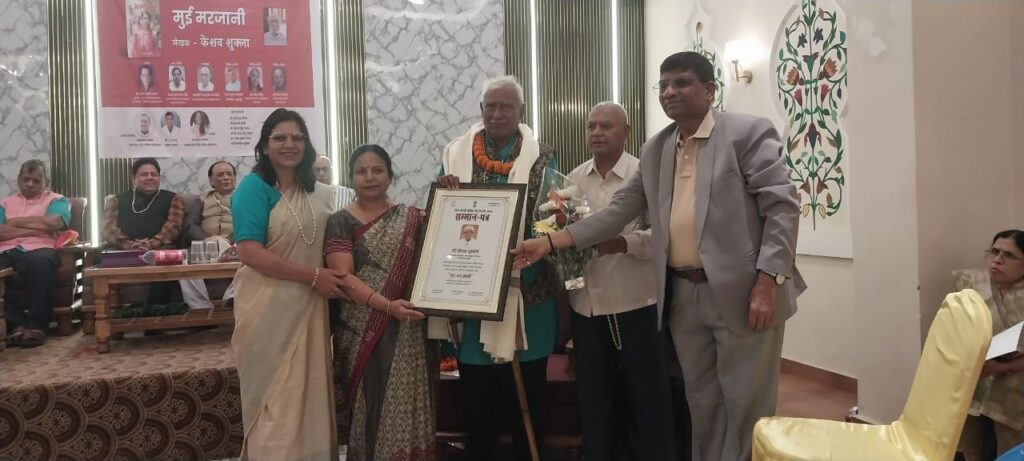 बिलासपुर/भारतेंदु साहित्य समिति के तत्वावधान आयोजित ‘ मुई मरजानी ‘ उपन्यास के विमोचन समारोह में विश्व हिंदी परिषद नई दिल्ली के छत्तीसगढ़ प्रकोष्ठ ने उपन्यासकार केशव शुक्ला का शाल,श्रीफल एवं सम्मान-पत्र देकर अभिनन्दन किया गया।