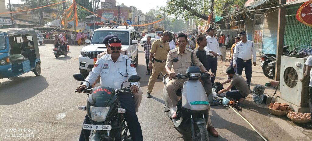 वरिष्ठ पुलिस अधीक्षक रजनेश सिंह के दिशा निर्देश एवं अतिरिक्त पुलिस अधीक्षक यातायात रामगोपाल करियारे के मार्गदर्शन एवं नेतृत्व में यातायात नियमों का उल्लंघन करने वाले वाहन चालकों के विरुद्ध लगातार यातायात पुलिस बिलासपुर के द्वारा सघन कार्यवाही की जा रही है साथ ही साथ वाहन चालकों एवं अन्य लोगों को यातायात पेट्रोलिंग, क्रेन एवं पॉइंट ड्यूटी के अधिकारियों कर्मचारियों के माध्यम से लगातार अपील, समझाइए एवं निर्देश भी दिए जा रहे हैं कि यातायात नियमों का समुचित पालन हर परिस्थिति में करें परंतु फिर भी वाहन चालकों, दुकान संचालकों, फुटकर व्यापारियों के द्वारा कठोर कार्रवाइयों के बावजूद भी अपने आदतों से इत्तेफाक नहीं कर रहे हैं।