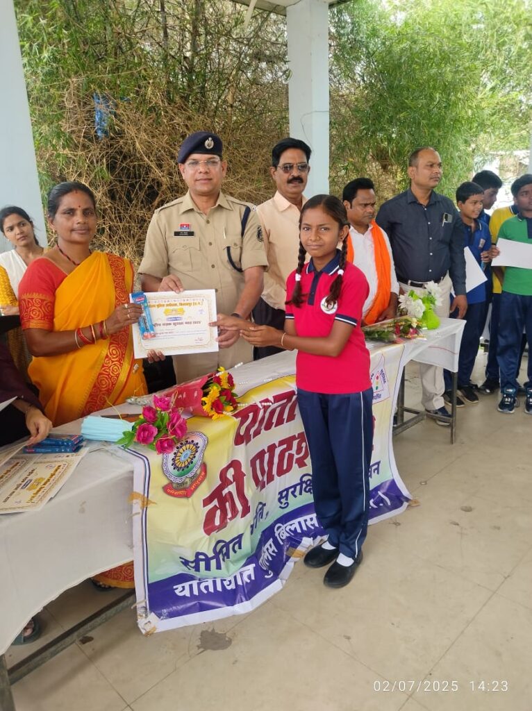 वरिष्ठ पुलिस अधीक्षक  रजनेश सिंह के दिशा निर्देश पर यातायात पुलिस बिलासपुर के द्वारा चलाए जा रहे "यातायात की पाठशाला कार्यक्रम" के तहत अतिरिक्त पुलिस अधीक्षक रामगोपाल करियारे के मार्गदर्शन एवं नेतृत्व मे सभी स्कूल, कॉलेज एवं सार्वजनिक संस्थानों एवं सार्वजनिक स्थलो में कार्यक्रम का आयोजन किया जा रहा है। जिले में सरल, सुगम, सुव्यवस्थित एवं सुरक्षित आवागमन हेतु स्कूली छात्र-छात्राओं एवं आमजन को यातायात के नियमों के संबंध में जागरूक किया जा रहा है तथा यातायात के नियमों के पालन हेतु सभी को समझाइस दी जा रही है।