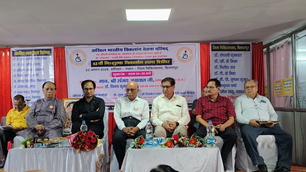 बिलासपुर/ अखिल भारतीय विकलांग चेतना परिषद के 62 वें निः शुल्क विकलांग शल्य शिविर का शुभारंभ करते हुए कलेक्टर संजय अग्रवाल जी ने कहा-मानव सेवा सबसे बड़ी सेवा है।