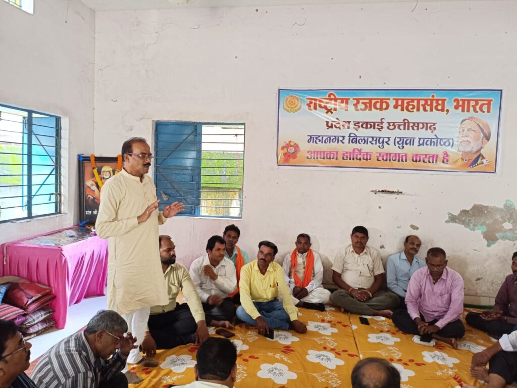 प्रदेश संरक्षक श्री ज्ञान सिंह निर्मलकर सोशल मीडिया प्रभारी श्री चंद्र कुमार निर्णेजक, संभागीय संरक्षक डॉक्टर मानसिंह निर्मलकर, जिला अध्यक्ष श्री पित्रेश उजागर,श्री नारद रजक, मोतीलाल निर्मलकर, परिक्षेत्र अध्यक्ष श्री दूज राम रजक, अध्यक्ष, तखतपुर कोटा, श्री जय निर्णेजक अध्यक्ष,बिल्हा, श्री विमल रजक अध्यक्ष, मस्तूरी बेलतरा, के साथ बिलासपुर महानगर के संरक्षक श्री बाबा रजाक, अध्यक्ष श्री विजय रजक ने कार्यक्रम का स्वागत करते हुए सकरी सहयोग करने का की बात कही। बैठक में श्री बहोरन कर्ष, योगाचार्य सिकंदर रजक, अनिरुद्ध निर्मलकर, सिद्ध राम निर्मलकर, श्रवण निर्मलकर रामकिशोर रजक, अजय रजक, नारायण रजक, कोमल रजक, रामकिशन रजक, भूपेंद्र बरेठ कत्थक कला गुरु, श्री जगदीश निर्मलकर, हरिशंकर निर्मलकर, रोहित निर्मलकर, लक्ष्मीकांत निर्णेजक, रिखीराम रजक, मोहित रजक, डॉ प्रदीप निर्णेजक, प्रमुख रूप से उपस्थित रहे। भव्य समारोह के आयोजन हेतु प्रत्येक विधानसभा क्षेत्रों में बैठक कर कार्यक्रम की रूपरेखा बनाने का निर्णय लिया गया कार्यक्रम का संचालन युवा प्रकोष्ठ के नगर अध्यक्ष हितेंद्र बरेठ एवं आभार प्रदर्शन प्रदेश महासचिव निलेश रजक ने किया।