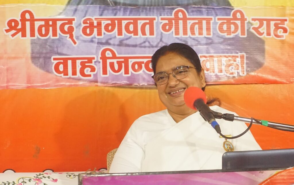 उद्बोधन के अंत में, दीदी ने भगवत गीता के 18वें अध्याय “मोक्ष सन्यास योग” के सार को समझाते हुए कहा कि पके हुए फल की तीन पहचान – नरम हो जाना, मीठा हो जाना और रंग बदल जाना – वैसे ही व्यक्ति में नम्रता, वाणी में मिठास और चेहरे पर आत्मविश्वास की चमक आ जाती है। उन्होंने भगवान के वचन को याद दिलाया: “सर्व धर्म परित्यज्य मामेकम शरणम व्रज अहम सर्व पापेभ्यो मोक्षयिष्यामि मा शुचः” – सभी प्रकार के धर्मों का परित्याग करो, केवल मेरी शरण में आ जाओ तो मैं तुम्हें समस्त पापों से मुक्त कर दूंगा, अर्जुन डरो मत।