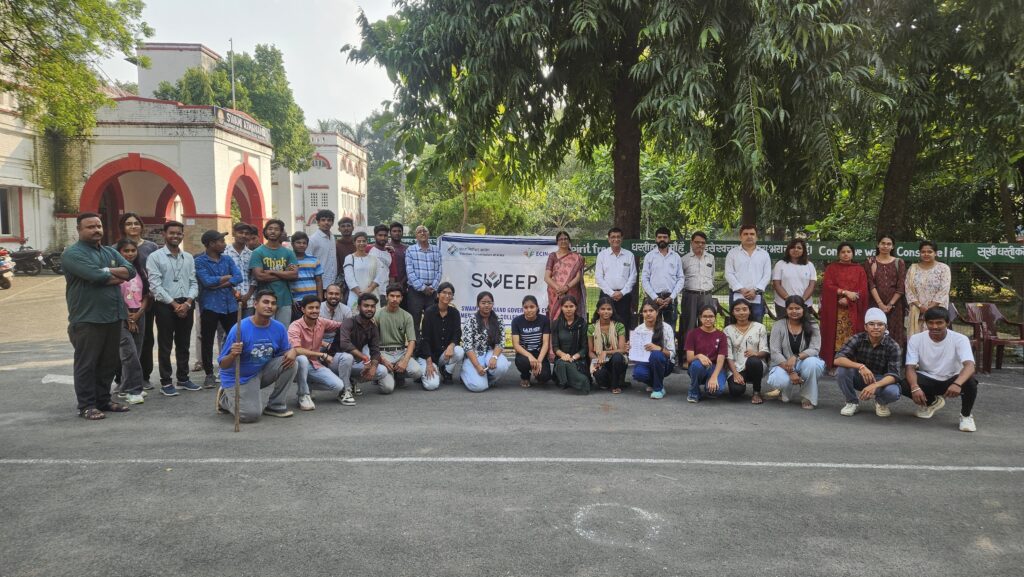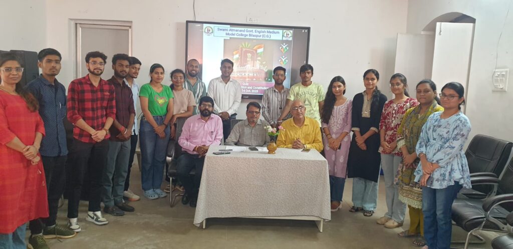 स्वामी आत्मानंद शासकीय अंग्रेजी माध्यम आदर्श महाविद्यालय, बिलासपुर (छ.ग.) में स्वीप कार्योजना के अंतर्गत मतदाता जागरूकता हेतु दिनांक 13/10/2025 से 14/10/2025 तक विभिन्न प्रकार के कार्याक्रमों का अयोजन किया गया। जो कि जिला मुख्य निर्वाचन पदाधिकारी बिलासपुर के मार्गदर्शन में संपन्न हुआ। स्वीप जिसे सुव्यवस्थित मतदाता शिक्षा एवं निर्वाचक सहभागिता कार्यक्रम के रूप में भी जाना जाता है इस कार्यक्रम के अंतर्गत ही इन प्रतियोगिताओं का आयोजन किया गया था जिसमें मुख्य अतिथि के रुप में महाविद्यालय के प्राचार्य प्रो. यू.के. श्रीवास्तव, विशिष्ट अतिथि के रूप में वरिष्ठ प्राध्यापक डाॅ. आर.के. सचदेव, डाॅ. प्रेमलता वर्मा, डाॅ. बी.के. त्रिपाठी उपस्थित थे। प्रो. श्रीवास्तव ने अपने अध्यक्षीय उद्बोधन में छात्रों को संबोधित करते हुए कहा की छात्र छात्राओं को अपने वोट के प्रति सजग होने की आवश्यकता है, हमें प्रलोभन या जातिवाद में न आकर उपयुक्त व्यक्ति को ही अपना मत देना चाहिए। कार्यक्रम के उदघाटन दिवस पर निम्न प्रतियोगिता का आयोजन किया गया जिसमें सर्वप्रथम सुबह 12 बजे से 01 बजे तक महाविद्यालय काॅन्फ्रेन्स हाॅल में परिचर्चा का अयोजन किया गया। उक्त परिचर्चा का विषय – ‘‘लोकतंत्र बनाम चुनावी राजनीति: क्या हम असली मुद्दो से भटक रहे है?’’ रहा। उक्त परिचर्चा में प्रतिभागीयों ने भारत को विश्व का सबसे बड़ा लोकतंत्र किस लिये कहा जाता है और भारत में इसका क्या महत्व है जैसे मुद्दों पर चर्चा की और आम छात्रों से इसके प्रभाव और आवश्यकता तथा वोट अधिकारी की जानकारीया साझा किया गया। इसके पश्चात दोपहर 01 बजे से 02 बजे तक महाविद्यालय के पुस्तकालय में निबंध लेखन का आयोजन किया गया। उक्त आयोजन में छात्रों ने भारी संख्या में प्रतिभागी के रूप में भाग लिया। निबंध लेखन का विषय ‘‘लोकतंत्र में निर्वाचन प्रक्रिया पर मीडिया की भूमिका’’ रही। जिसमें प्रतिभागी के रूप में भाग ले रहे छात्र-छात्राओं ने अपने अभिव्यक्ति और बौद्धिक विवेक से निबंध लेख का कार्य पूर्ण किया। इसे पश्चात् दिन के अंतिम सत्र में दोपहर 02 बजे से 04 बजे तक महाविद्यालय प्रांगण में निर्वाचन प्रक्रिया से संबंधित विषय पर अपना नुक्कड़ नाटक प्रस्तुत किया। जिसमें महाविद्यालय के छात्र-छात्राओं ने अपनी प्रस्तुती प्रदान की। इसके पश्चात् आयोजन के द्वितीय दिवस में दिनांक 14/10/2025 को विविध आयोजन संपन्न हुए जिसमें सुबह 12 बजे से 01 बजे तक महाविद्यालय प्रांगण में रंगोली प्रतियोगिता का आयोजन किया गया। जिसका विषय निर्वाचन एवं संविधान से संबंधित रहा। इस प्रतियोगिता में लगभग 10 से अधिक विद्यार्थियों ने अपना रंगोली संबंधि कलाकृतियों का प्रदर्शन किया। इसके पश्चात् दोपहर 01 बजे से 02 बजे तक