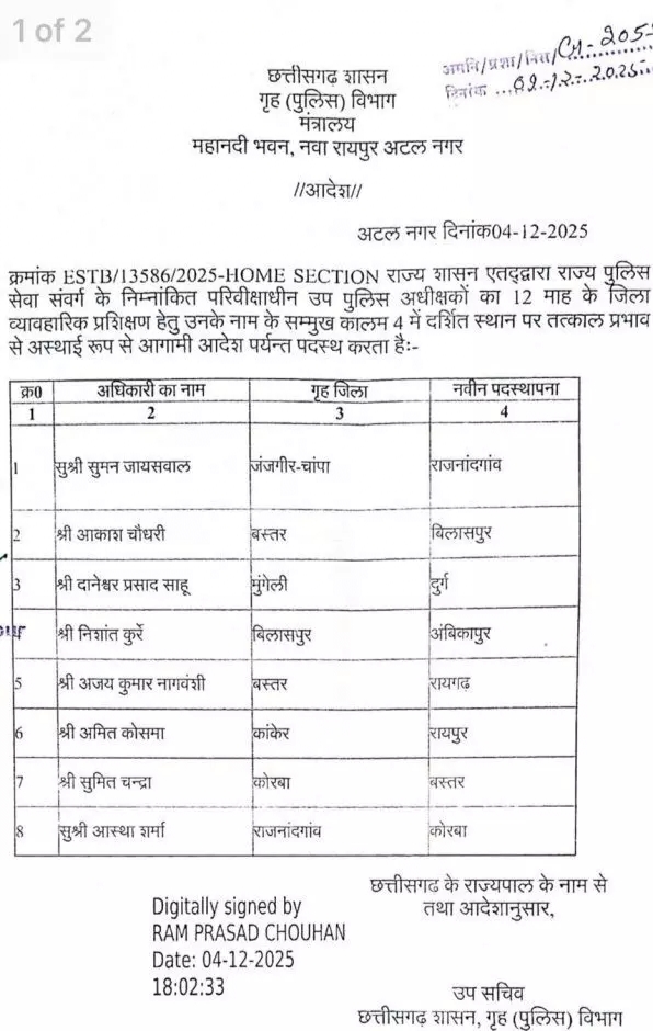राज्य सरकार ने जारी की डीएसपी की नवीन पदस्थापना सूची देखे आदेश की कॉपी