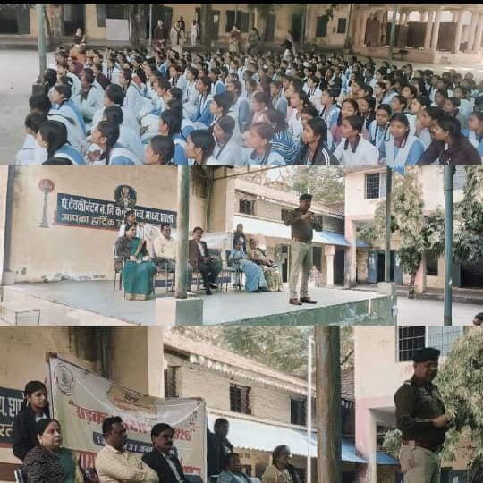 राष्ट्रीय सड़क सुरक्षा माह 2026 के अंतर्गत प्रतिदिन बिलासपुर जिले में विभिन्न प्रकार से आम जनों को सुरक्षित यातायात के प्रति जागरूक किया जा रहा है इस क्रम में आज स्थानीय देवकीनंदन कन्या उच्चतर माध्यमिक विद्यालय में यातायात की पाठशाला लगाई गई जहां यातायात के एडिशन एसपी श्री राम गोपाल करियारे बच्चों को संबोधित करते हुए कहा कि वे यातायात पुलिस के संवाहक बने आपको दी जा रही सड़क सुरक्षा की जानकारी औरों तक प्रेषित करें इस क्रम में यातायात के मास्टर ट्रेनर पुरुष सब इंस्पेक्टर उमाशंकर पांडे ने कहा कि बेटियां चाहे तो सड़क दुर्घटना में कमी ला सकती हैं क्योंकि बेटियां अपने परिवार के प्रति बेहद संजीदा होती हैं। उन्होंने इसके कारण एवं निवारण बताते हुए सदैव सावधान रहने की बात कहीl कार्यक्रम में जीव धरनी फाउंडेशन के श्री विकास वर्मा सड़क सुरक्षा समिति की समिति विद्या गोवर्धन एवं उषा भांगे तथा संस्था की प्राचार्य श्रीमती कल्पना दुबे एवं बड़ी संख्या में अध्यापक शिक्षिकाएं तथा लगभग 400 की संख्या में छात्राएं उपस्थित थी lकार्यक्रम के अंत में उमाशंकर पांडे ने बच्चियों को सदैव यातायात नियमों के प्रति निष्ठावान रहने की शपथ भी दिलाई!