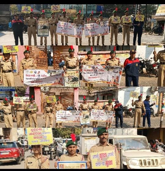 साथ ही NCC एवं NSS के छात्र छात्राओं द्वारा लेफ्टीनेंट आशीष शर्मा के नेतृत्व में नगर के प्रमुख चौक चौराहों में यातायात जागरूकता कार्य किया गया।