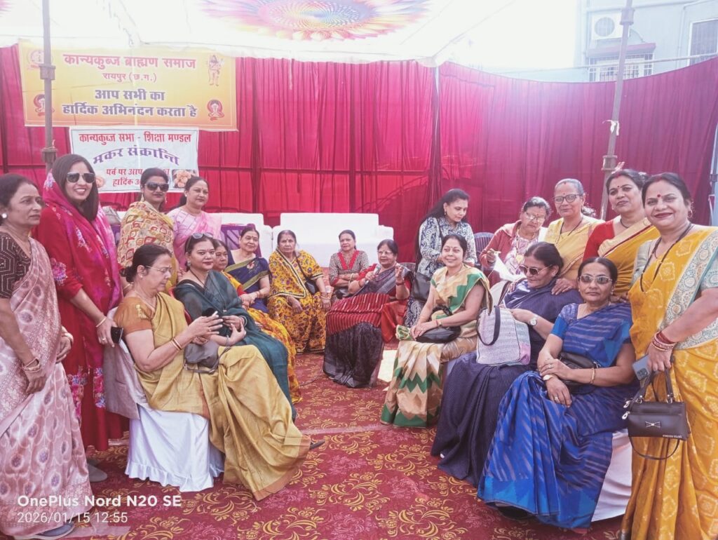 रायपुर | कान्यकुब्ज सभा-शिक्षा मंडल रायपुर द्वारा मकर संक्रांति के पावन पर्व के उपलक्ष्य में 15 जनवरी 2026 को आशीर्वाद भवन, बैरन बाज़ार, रायुपर में एक भव्य ‘खिचड़ी भोज एवं विभिन्न प्रतियोगिता’ का आयोजन किया गया। समाज के अध्यक्ष सुरेश मिश्रा ने जानकारी दी कि इस कार्यक्रम के मुख्य अतिथि समाज के पूर्व अध्यक्ष श्री वीरेन्द्र पांडेय जी थे | इस आयोजन का उद्देश्य सामुदायिक एकता को बढ़ावा देना और मकर संक्रांति के धार्मिक व सामाजिक महत्व को साझा करना, आपसी सौहार्द, भाईचारे और पारंपरिक संस्कृति का प्रसार करना है| उत्तरायण पर्व पर सभी ने सूर्य भगवान का हार्दिक स्वागत किया गया| इस अवसर पर कुर्सी दौड़, गिल्ली डंडा, रोमांचक खेल प्रतियोगिताएं संपन्न हुई, जिसमें कुर्सी दौड़ (महिला वर्ग) में श्रीमती शीतल मिश्रा ने प्रथम स्थान प्राप्त किया वही पुरुष वर्ग ने गिल्ली-डंडा खेल का भरपुर आनंद उठाया| कार्यक्रम पश्चात् उपस्थित लोगों ने ‘तिल लड्डू एवं खिचड़ी भोज’ का लुफ़्त उठाया | कार्यक्रम संयोजक आशीष बाजपेई थे।