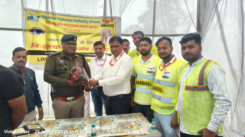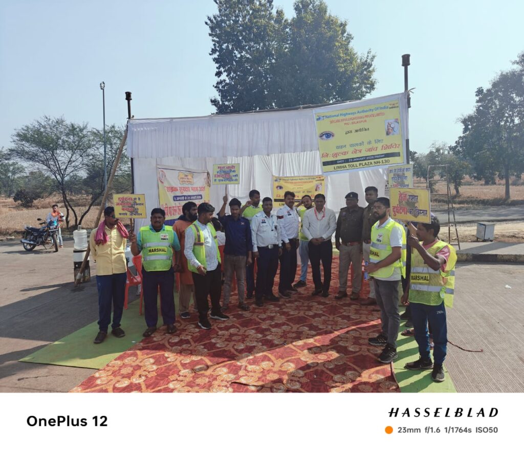 इसी क्रम में आज दिनांक 23.01.2026 को नेशनल हाईवे क्रमांक 130 बिलासपुर कोरबा मार्ग में लिम्हा टोल प्लाजा के पास भारी वाहन चालको एवं परिचालकों के लिए स्वास्थ्य विभाग के सहयोग से वृहद स्तर का स्वास्थ्य एवं नेत्र जांच शिविर का आयोजन किया गया ।