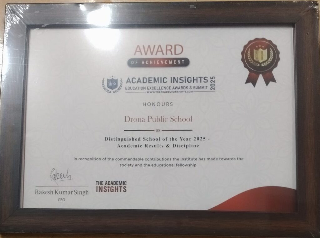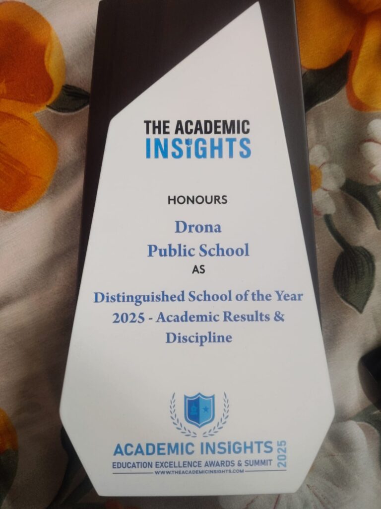 शिक्षा के क्षेत्र में उत्कृष्ट उपलब्धि हासिल करते हुए द्रोणा पब्लिक स्कूल को द एकेडमिक इंसाइट्स एजुकेशन एक्सीलेंस अवॉर्ड्स एंड समिट 2025 द्वारा “डिस्टिंग्विश्ड स्कूल ऑफ द ईयर 2025 – एकेडमिक रिजल्ट्स एंड डिसिप्लिन” सम्मान से नवाज़ा गया।