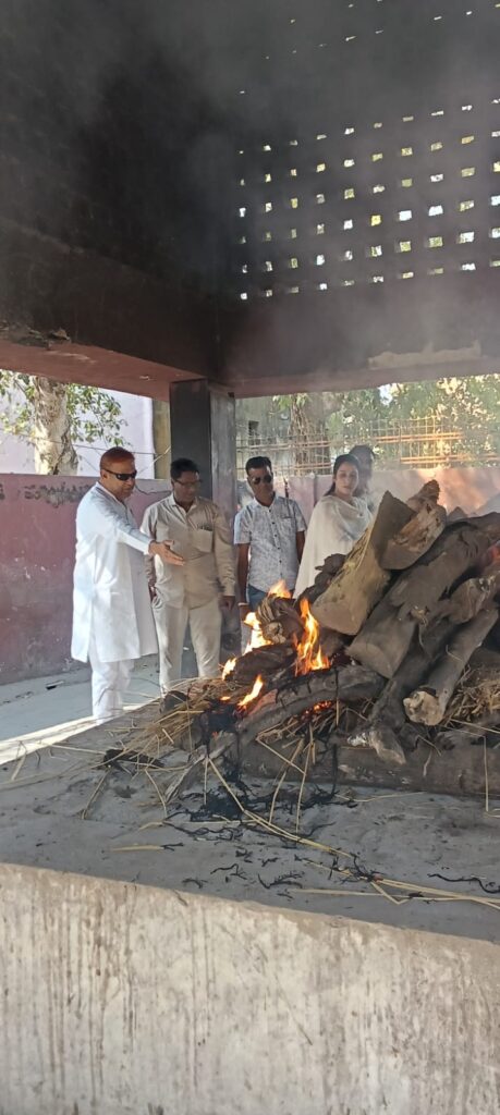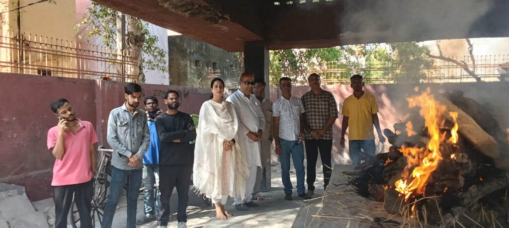 मृतात्मा को मुखाग्नि संस्था की सक्रिय कार्यकर्ता सिमरन तलरेजा ने दी ज्ञातव्य है कि शोक विव्हल सिमरन संस्था की ओर से इन दिव्यात्माओं को सेवा देने अक्सर जाया करती थी और अपने इन्हीं भावनात्मक संबंधों का निर्वहन मुखाग्नि दे वर्तमान परिवेश में सर्व समाज के लिए मानवीय संबंधों की नई मिसाल पेश की,,,,