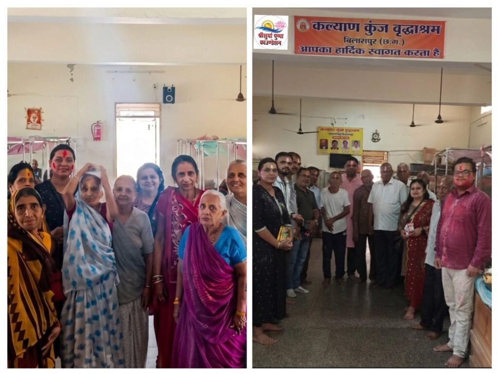 श्रीसूर्या पुष्पा फाउंडेशन परिवार के द्वारा होली मिलन कल्याणकुंज वृद्धाश्रम मसानगंज में रखा गया जिसमें संस्था के सभी सदस्यों ने बढ़ चढ़कर हिस्सा लिया, बुजर्ग माताओं और पुरुषों के द्वारा होली खेली गई और सभी के चेहरों पर हर्बल गुलाल/रंग का टीका लगाकर आशीर्वाद लिया गया, तत्पश्चात सभी को लिजी जूस देकर सभी बुजुर्गों से आशीर्वाद लिया गया। श्रीसुर्या पुष्पा फाउंडेशन के डायरेक्टर गौरव शुक्ला का हमेशा से एक अलग विचार रहा है और विगत 4 सालों से लगातार अलग-अलग कार्य करके समाज को बदलने की दिशा में कोशिश कर रहे हैं,और उनका कहना है कि एकता में बहुत ताकत है, जब वह आए थे तो अकेले थे, और आज उनके साथ पूरे छत्तीसगढ़ में 1500 से2000 लोग हैं जिनके साथ मिलकर निस्वार्थ भाव से सेवा कर रहे हैं, और आगे लोगों को रोजगार मुहैया कराना भी उनका सबसे महत्वपूर्ण उद्देश्य है।फाउंडेशन का 4 साल का सफर पूरा हो गया है जिसमें अलग-अलग सामाजिक कार्यों में 5000 से ज्यादा एक्टिविटी का कार्य हो चुका है।आगे छत्तीसगढ़ में फाऊंडेशन का विस्तार करते हुए विभिन्न सामाजिक कार्यों पर फोकस करेंगे एवं महिला सशक्तिकरण पर भी उनका एक अलग विचारधारा के अनुरूप काम करने का विचार है, उनके फाउंडेशन के द्वारा स्कूल के बच्चों को गुड टच ,बेड टच के बारे में भी जानकारी भी दी जा रही है, भविष्य में नशा मुक्ति केंद्र , वृद्धाश्रम, ब्लड बैंक खोलने का भी विचार है,इस संबंध में गौरव शुक्ला का कहना है कि हम उनके पूरे दुखों को खत्म तो नहीं कर सकते पर थोड़ा समय उनके साथ रह कर उनके दुखों को कम कर सकते हैं,सभी से अपील है वे भी ऐसा ही करें। जब आप उनसे आशीर्वाद लेने जाते हैं या इनसे मिलने जाते हैं तो इनको बड़ा सुकून मिलता है क्योंकि बुजुर्ग माता-पिता की सेवा से बढ़कर कोई सेवा नहीं है आप कितने भी तीर्थ घूम लें और भगवान का पूजा कर लें,मगर आपको अपने बुजुर्गों का आशीर्वाद अगर ना मिले तो वह कम है ,माता-पिता की सेवा ही पहला धर्म है और इसी धर्म के साथ यह कार्य कर रहे हैं ,और समाज को एक संदेश दे रहे हैं, जिस तरह से वृद्ध आश्रम लगातार खुल रहे हैं, वह बहुत ही चिंता का विषय है, क्योंकि बच्चों में संस्कार डालना बहुत जरूरी है, ताकि बच्चे इस तरह का कदम उठाने से पहले सोच लें। आज के कार्यकम में जो पदाधिकारी शामिल हुए उनके नाम गौरव शुक्ला कमलेश गुप्ता, आमना राजगीर ,,राघव साहू , ,टिकेश्वर साव , संगीता तिवारी मेहा गडेवाल अभय दुबे ,कल्याणकुंज के रंजन प्रधान मौजूद थे!