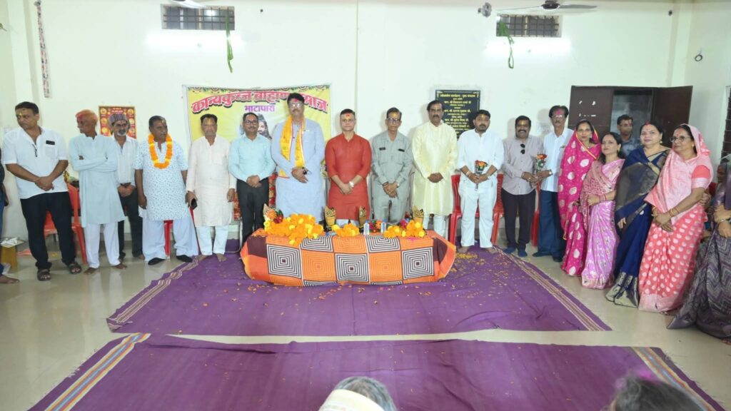 कान्यकुब्ज ब्राह्मण समाज के भवन पुष्प मंगलम में समाज का होली मिलन और वरिष्ठ महिला एवं विभिन्न संस्थानों में कार्यरत महिलाएं व बालिकाओं का सम्मान कार्यक्रम सम्पन्न हुआ, इस कार्यक्रम छत्तीसगढ़ शासन द्वारा छत्तीसगढ़ आदिवासी, स्थानीय परम्परा एवं औषधि पादप बोर्ड के नवनियुक्त उपाध्यक्ष व बेटी बचाओ बेटी पढ़ाओ के प्रदेश संयोजक श्री अंजय शुक्ला का भाटापारा नगर में आगमन हुआ ब्राह्मण समाज के द्वारा उनका भव्य और अद्वितीय स्वागत किया गया समाज के होली मिलन कार्यक्रम में अंजय शुक्ला का समाज के वरिष्ठ जनों द्वारा सम्मान किया गया।*