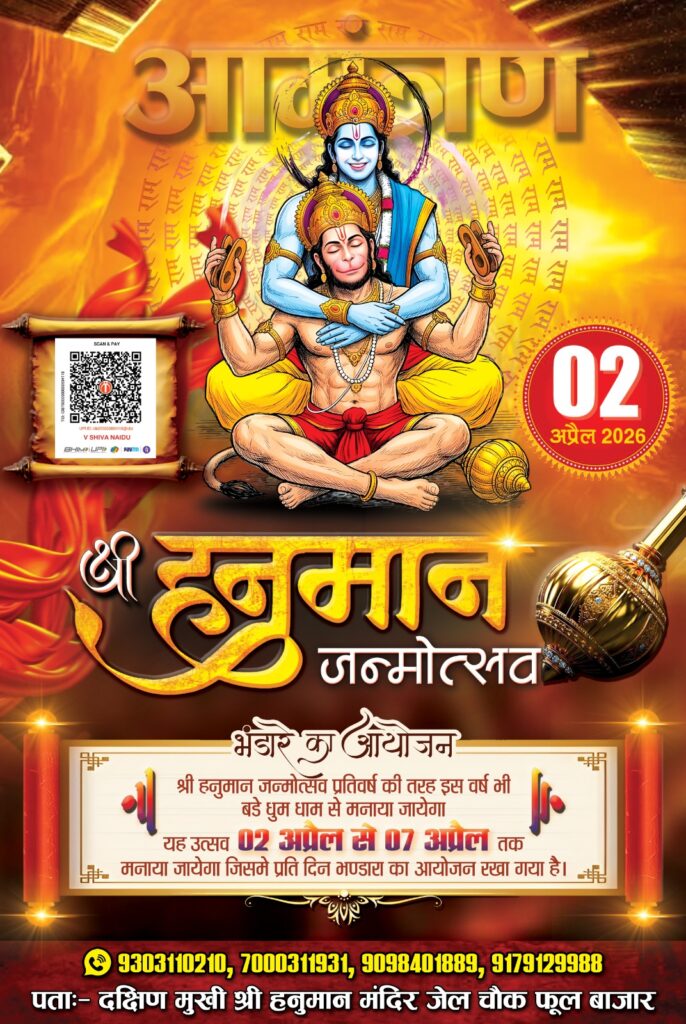 श्री हनुमान जन्मोत्सव के शुभ अवसर पर 6 दिनों भव्य आयोजन की तैयारी