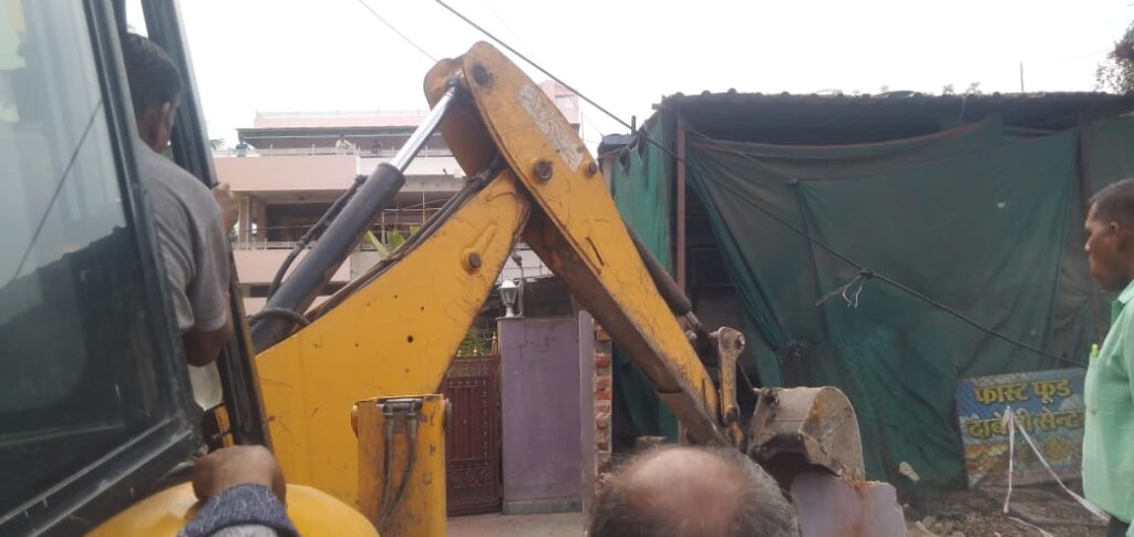 नाला निर्माण के बीच में व्यवधान बने अतिक्रमण को आज नगर पालिक निगम द्वारा हटा लिया गया।