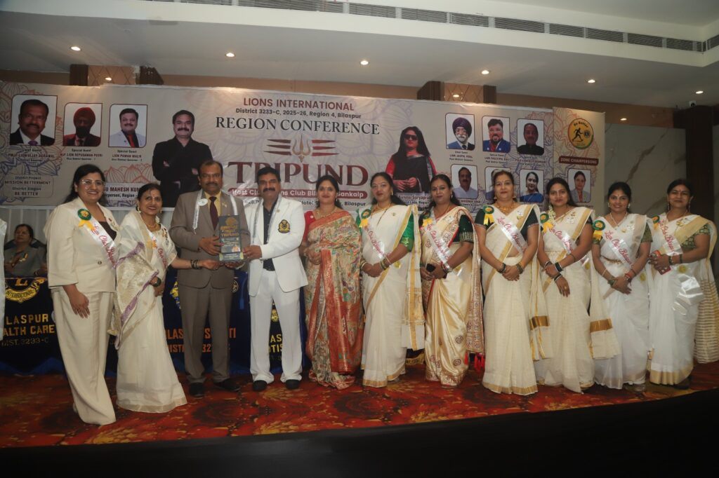 अंतर्राष्ट्रीय सामाजिक संस्था 3233- C की शाखा लायंस क्लब बिलासपुर, स्माइल को 13अवार्ड से सम्मानित किया गया, रीजन 4 के रीजन चेयर पर्सन भी महेश के “त्रिपुण्ड” रीजन में कॉन्फ्रेंस शहर के एक निजी होटल में 26 अप्रैल को संपन्न हुई ,रीजन 4 में बिलासपुर के 12 ,13 क्लब आते हैं इन सब क्लब ने जो साल भर सेवा गतिविधियां किए हैं, और उनकी रिपोर्टिंग रीजन चेयरपर्सन, पोर्टल पर, इंटरनेशनल पर भी की जाती, हैं इस कॉन्फ्रेंस में मुख्य अतिथि 3233- C के डिस्ट्रिक्ट गवर्नर mjf विजय अग्रवाल (कोरबा ), एवं विशिष्ट अतिथि वाइस डिस्ट्रिक्ट गवर्नर प्रथम रिपुदमनपुसरी (रायपुर) एवं वाइस डिस्टिक गवर्नमेंट द्वितीय श्री पवन मलिक (सतना) के रहे, पास्ट डिस्ट्रिक्ट गवर्नर एमजेएफ जसपाल होरा, सर एमजेएफ प्रीतिपाल, बाली सर एमजेएफ दिलीप भंडारी sir, एवं जोन 3 चेयरपर्सन डॉ आराधना दास रीजन सचिव अर्चना तिवारी रीजन एडवाइस नितिन सलूजा उपस्थित रहे, क्लब के साल भर की गतिविधियों में, पर्यावरण पर्यावरण जागरूकता,