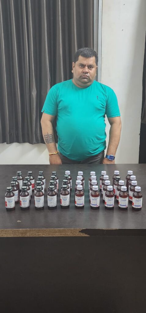 बिलासपुर. निजात अभियान के तहत पिछले माह मेडिकल स्टोर वालों की थानावार मीटिंग लेकर नशे के लिए प्रयुक्त होने वाले ड्रग्स की अनाधिकृत रूप से बिक्री न करने के लिए दी गई थी। निजात अभियान के तहत अवैध नशे के व्यापार करने वालों के ऊपर कार्यवाही करने हेतु निर्देश प्राप्त हुआ था। मुखबिर सूचना मिला की कोटा बस स्टैंड रोड स्थित मां महामाया मेडिकल स्टोर के संचालक देवेंद्र साहू के द्वारा अपने मेडिकल स्टोर से आम जनता को अवैध व डॉक्टर के बिना प्रिस्क्रिप्शन के लोगों को नशीली कोडीन युक्त कफ सिरप की बिक्री कर रहा है । उक्त सूचना पर एस.सी.सी.यू. टीम बिलासपुर एवं थाना कोटा की टीम द्वारा उक्त मेडिकल स्टोर में सादी वर्दी में ग्राहक बनाकर कोडिन युक्त कफ सिरप खरीदी करने हेतु भेजा गया। मेडिकल दुकान के संचालक देवेंद्र साहू द्वारा अवैध रूप से कोडीन युक्त कफ सिरप बिक्री करते पाए जाने पर मां महामाया मेडिकल स्टोर कोटा के संचालक देवेंद्र साहू पिता जोध राम साहू उम्र 40 वर्ष निवासी कोटा जिला बिलासपुर के मेडिकल दुकान से कुल 40 बोतल कोडिंन युक्त कफ सिरप बरामद किया गया। मेडिकल दुकान के संचालक द्वारा बिना डॉक्टर के प्रिस्क्रिप्शन के अवैध नशीली कफ सिरप बिक्री करते पाए जाने व ड्रग्स एवं कॉस्मेटिक एक्ट का उल्लंघन करते पाए जाने पर पंचनामा तैयार कर अग्रिम कार्यवाही हेतु औषधि निरीक्षक जिला औषधि एवं खाद्य विभाग बिलासपुर को सुपुर्द किया गया।