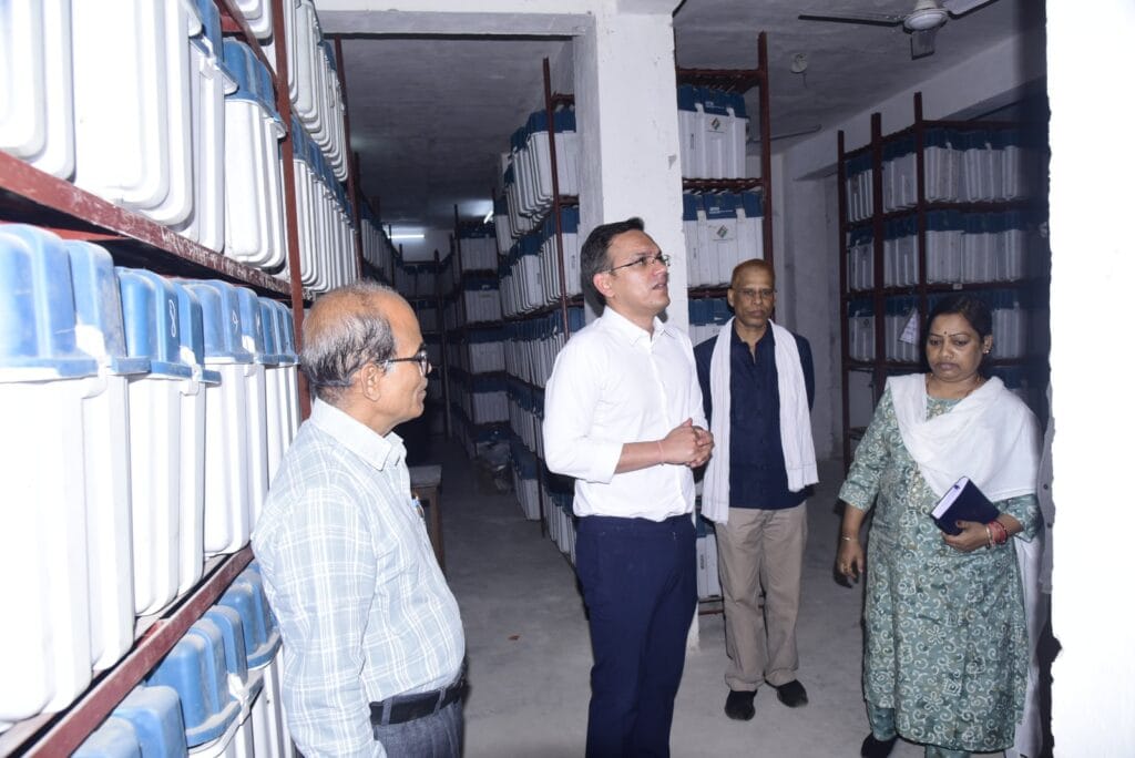 बिलासपुर.कलेक्टर एवं जिला निर्वाचन अधिकारी सौरभकुमार ने आज जिला कार्यालय परिसर स्थित ईवीएम गोडाउन का निरीक्षण किया और प्रत्येक तीन महीने में गोडाउन का प्रत्यक्ष निरीक्षण करने के निर्देश भारत निर्वाचन आयोग के निर्देशानुसार निरीक्षण किया गया। मान्यता प्राप्त राजनीतिक दलों के प्रतिनिधि भी इस मौके पर उपस्थित थे। उन्होंने ईवीएम व वीवीपेट के समुचित रखरखाव निर्देश दिए। इस दौरान उनके साथ उप जिला निर्वाचन अधिकारी श्रीमती ललिता भगत भी उपस्थित थीं।