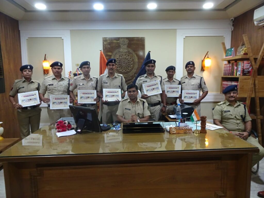 विधान सभा सत्र दौरान विधान सभा सेल में बेहतर कार्य हेतु उप निरीक्षक मनीष कांत थाना सिटी कोतवाली, कार्यालय कार्य में बेहतर कार्य हेतु सहायक उप निरीक्षक (अ) श्री राजाराम धु्रव, लधु अधिनियम, प्रतिबंधक कार्यवाही व उत्तर प्रदेश से मय 26 तोला सोना गिरफ्तारी में उल्लेखनीय भूमिका हेतु प्र.आर 505 निर्मल सिंह ठाकुर थाना सिटी कोतवाली, कानून-व्यवस्था एवं विशेष कर नवरात्रि ड्यूटी में उत्कृष्ट कार्य हेतु म.प्र.आर.119 संगीता नेताम थाना सरकण्डा, पचपेढ़ी के दीपक नायक मर्डर में डाग रोजी के साथ सूझबूझ से आरोपी को पतसासाजी हेतु प्र.आर. 132 राममिलन (डॉग हेण्डलर), सकरी क्षेत्रान्तर्गत पत्नि को टुकड़ों में काटकर हत्या के सनसनीखेज प्रकरण में आरोपी को पकड़ने में भूमिका हेतु आर. 1148 सरफराज खॉंन ए.सी.सी.यु., आकस्मिक चेकिंग दौरान 03 आरोपियों को पकड़ 29 नग मोबाईल बरामदगी हेतु आर. 1236 विकास यादव थाना सिविल लाईन, डायल-112 ईवेंट पर तत्काल पहुॅंचकर पीड़ित को मदद करना, व समय का पाबंद होने हेतु आर. 191 आशीष वस्त्रकार डायल-112 को कॉप ऑफ मंथ सम्मान से सम्मानित किया गया है।