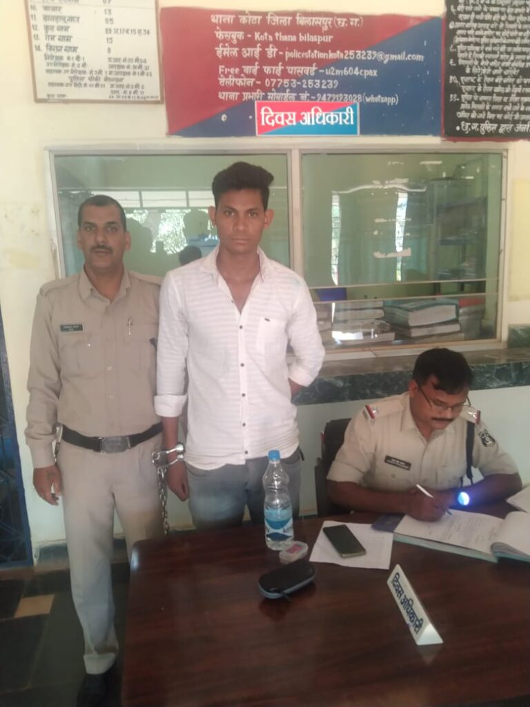 बिलासपुर. 24.08.2022 को प्रार्थी भीमू साहू पिता गोवर्धन साहू उम्र 25 साल साकिन बंधवापारा कोटा की रिपोर्ट पर अपराध पंजीबद्ध कर विवेचना में लिया गया था। उक्त मामले में दिनांक 11.12.2022 को 03 आरोपीगण – 01. विनोद पात्रे 02. लव कुमार 03. आशीष पात्रे साकिन रानीसागर मौहरखार कोटा को गिरफ्तार कर न्यायालय पेश किया गया था।मामले मे आरोपी भूपेंद्र बंजारे पिता साधेलाल उम्र 22 साल साकीन रानीसागर कोटा जो 8 माह से फरार था जिसे पतासाजी कर आज दिनांक 29.04.2023 को गिरफ्तार कर न्यायिक रिमांड पर भेजी जाती है।आरोपी की पतासाजी एवं कार्यवाही में थाना प्रभारी उत्तम साहू, प्रआर. नीलाकर सेठ, आरक्षक भोप साहू, संजय कश्यप, जलेश्वर साहू का विशेष योगदान है।