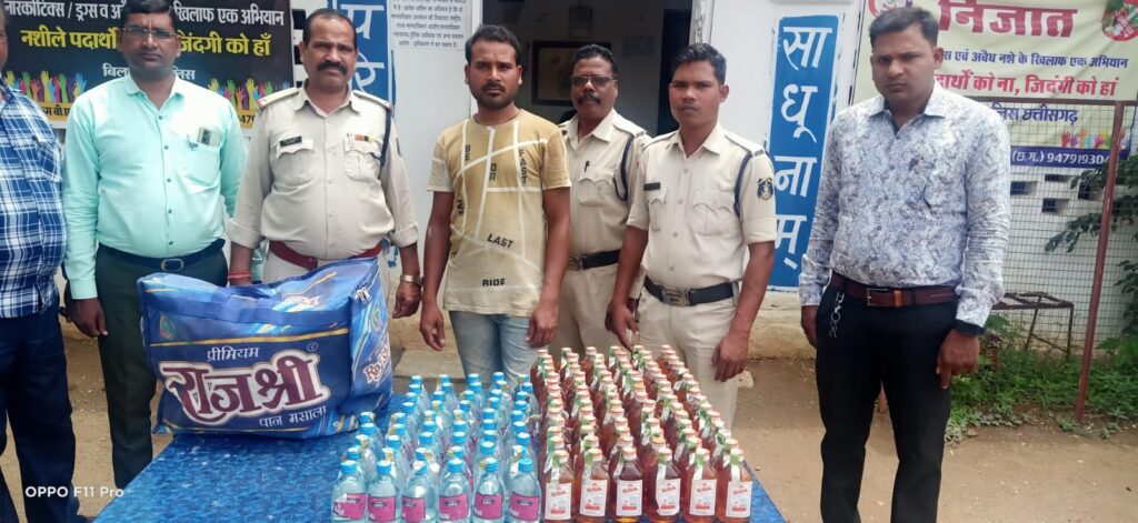 बिलासपुर. पुलिस अधीक्षक संतोष सिंह के निर्देशानुसार थाना पचपेड़ी द्वारा टीम बनाकर थाना क्षेत्र के अंतर्गत अवैध शराब बिक्री की सूचना मिली अभियान चलाकर रेड कार्रवाई किया गया । कृत कार्यवाही के दौरान राम गोपाल पटेल हीरो एसपी 125 मोसा क्रमांक सीजी 10 बी जी 5480 में अवैध रूप से गोवा अंग्रेजी एवं देसी प्लेन शराब अधिक मात्रा में ऱखकर ग्राम खपरी की ओर परिवहन करते हुए मिला उक्त संबंध में व्यक्ति को शराब बिक्री करने एवम् रखने के संबंध में दस्तावेज प्रस्तुत करने कहते हुए पर्याप्त समय दिया गया किंतु किसी भी प्रकार का अनुज्ञप्ति प्रस्तुत नहीं किया गया उक्त आरोपी के विरुद्ध आबकारी एक्ट की धारा के अंतर्गत कार्यवाही कर रिमांड में भेजी गई।
