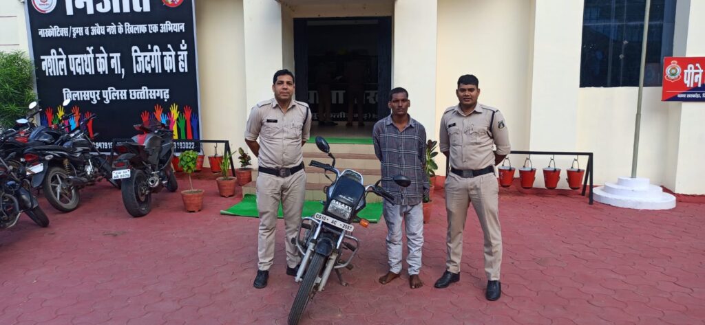 बिलासपुर. पुलिस अधीक्षक संतोष कुमार सिंह (भापुसे) द्वारा जिले में हो रही चोरियों पर अंकुश लगाने एवं कार्यवाही करने निर्देशित किया गया है, जिसके परिपालन में सरकण्डा पुलिस द्वारा क्षेत्र में हुई चोरी की पता तलाश की जा रही थी कि दिनांक 29.04.2023 को सुबह करीब 10.00 बजे संजीव कुमार देवांगन अपने मोटर सायकल वाहन क्रमांक CG 10 AC 255709. स्प्लेंडर प्लस से अपने निर्माणाधीन मकान में गया था मोटर सायकल को नाली के उपर में खड़ी करके घर अंदर चला गया मजदूरों से काम करवाकर करीब 06.30 बजे बाहर निकलकर देखा तो मोटरसायकल नही था आसपास पता करने पर पता नही चला कोई अज्ञात व्यक्ति के द्वारा चोरी कर ले गया जिस पर थाना सरकंडा में अपराध पंजीबद्ध कर पतासाजी में लिया गया।