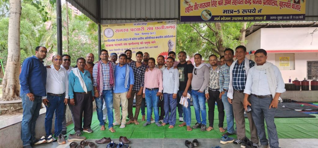 आज दिनाक 17.05.20230को राजस्व पटवारी संघ छत्तीसगढ़ के आठ सूत्रीय मांगों के समर्थन में जिला बिलासपुर में पटवारियों के द्वारा तीसरे दिन भी सतत अनिश्चितकालीन हड़ताल जारी रहा, पटवारी जिसे राजस्व विभाग का रीढ़ कहा जाता है,वे अपने मांगो के समर्थन में भारी संख्या में हड़ताल में इस भीषण गर्मी में डटे हुए हैं, राजस्व पटवारी संघ की मांगे जो विगत २वर्षो से लंबित है, जिसको राजस्व मंत्री जी के आश्वाशन द्वारा स्थगित किया गया था जिसकी मांगे आज दिनाक तक पूर्ण नहीं की गई है जिसके कारण से स्थगित आंदोलन को प्रारंभ किया गया है जिसमे महत्वपूर्ण८मांगे है वेतन विसंगति पदोन्नति संसाधन भत्ता अतिरिक्त प्रभार का भत्ता पटवारी का योग्यता स्नातक विभागीय जांच बिना प्राथमिकी दर्ज न हो।इस तरह की पटवारियों की मांग जिस पर पूरे प्रदेश की पटवारी इस भीषण गर्मी में आंदोलन में बैठे हुए है। इसमें जिलाध्यक्ष देव कश्यप,सहित सूर्य प्रकाश शुक्ला,चित्रकांत राही,प्रशांत जाय साल,पराग महिलंगे,पवन चौबे,आशीष पांडेय, केके पाठक,अविनाश,विष्णु,मिलाप, ओमप्रकाश भारतद्वाज,उपेंद्र मरावी,केशव साहू राठिया जी,राकेश पोर्ते,कविता भानु,झरना कश्यप,बसंत तवर अजय कुमार साहू तहसील अध्यक्ष बिल्हा, सूरज प्रधान मोहन लाल साहू नीरज क्षत्रिय,बृजेश क्षत्रिय प्रातीय सचिव, राजेश कुमार पवन,विजय सहित सभी पटवारी साथी उपस्थित रहे