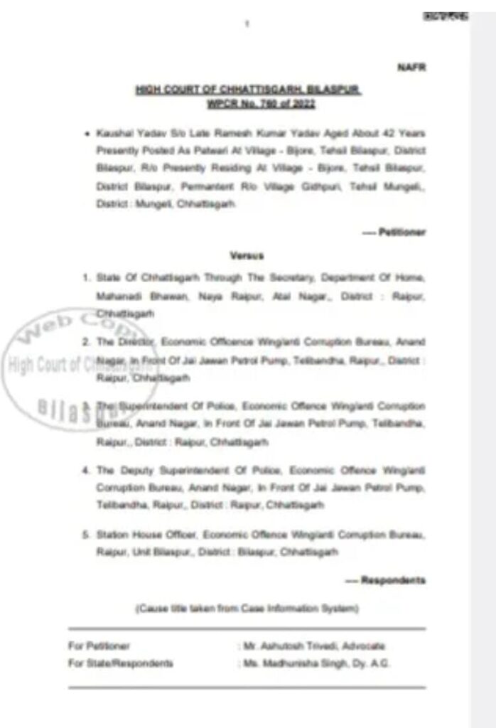 पटवारी कौशल यादव को मिली हाईकोर्ट से राहत