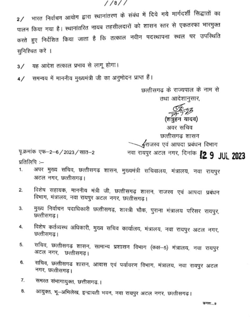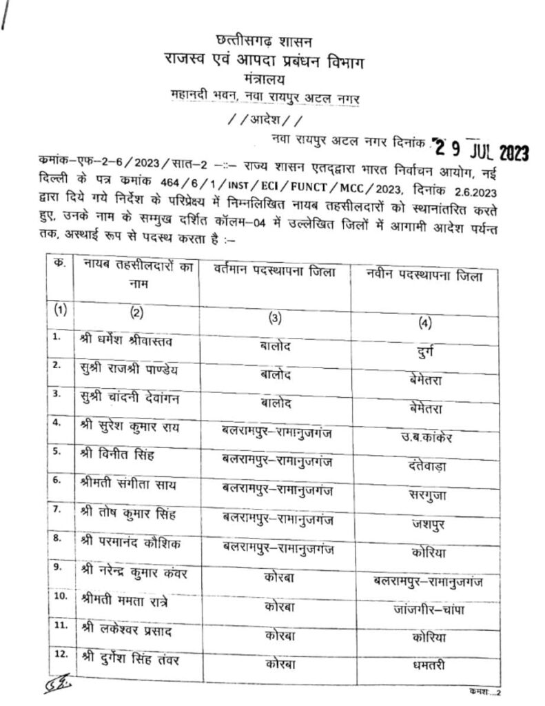 बिग ब्रेकिंग तहसीलदारों के ट्रांसफर किसको कहां मिली जगह आदेश की कॉपी देखिए