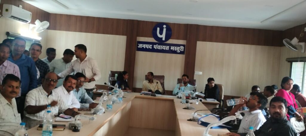 आज दिनांक 9/8/2023 को जनपद पंचायत मस्तूरी के सभाकक्ष में मस्तूरी एस.डी.एम.बजरंग वर्मा के द्वारा सीपत एवं मस्तूरी तहसील के समस्त राजस्व अधिकारियों, समस्त राजस्व निरीक्षकगणों,समस्त पटवारीगणों की उपस्थिति में बैठक का आयोजन किया गया, जिसमें उन्होंने शासन एवं उच्चाधिकारियों से प्राप्त दिशा निर्देशों पर समीक्षा की गई। वर्तमान में सभी मतदान केन्द्रों में अभी मतदाताओं के नाम जोड़ने, काटने, संशोधन करने हेतु विशेष अभियान जारी है जिसके संबंध में अधिक से अधिक प्रचार कर निर्वाचन आयोग के इस महत्वपूर्ण कार्य को सफलतापूर्वक संपन्न कराने हेतु हिदायत दी गई। आज की इस बैठक में तहसीलदार मस्तूरी अभिषेक राठौर, तहसीलदार सीपत सिद्धि गबेल,नायब तहसीलदारगण अप्रतिम पांडेय, उमाशंकर लहरे, कृष्णमूर्ति दीवान,समस्त राजस्व निरीक्षकगण, समस्त पटवारीगण, कानूनगो टी.आर.भार्गव, भुइयां आपरेटर हरीश कुर्रे, सुशील कैवर्त, रामेश्वर राठौर उपस्थित थे ।उक्ताशय की जानकारी मस्तूरी पटवारी रोहित कौशिक द्वारा दी गई।
