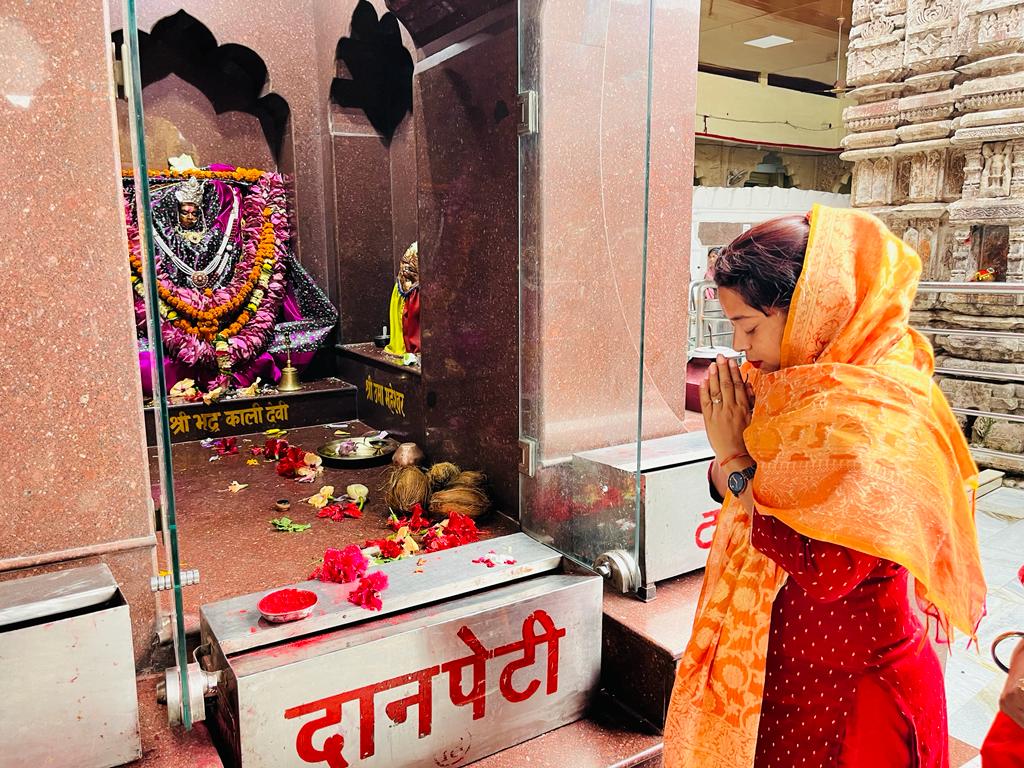 डॉ उज्ज्वला रतनपुर पहुंचने के बाद भैरव बाबा मंदिर में भी दर्शन किया व बिलासपुर वासियों के लिए सुख शांति की कामना की