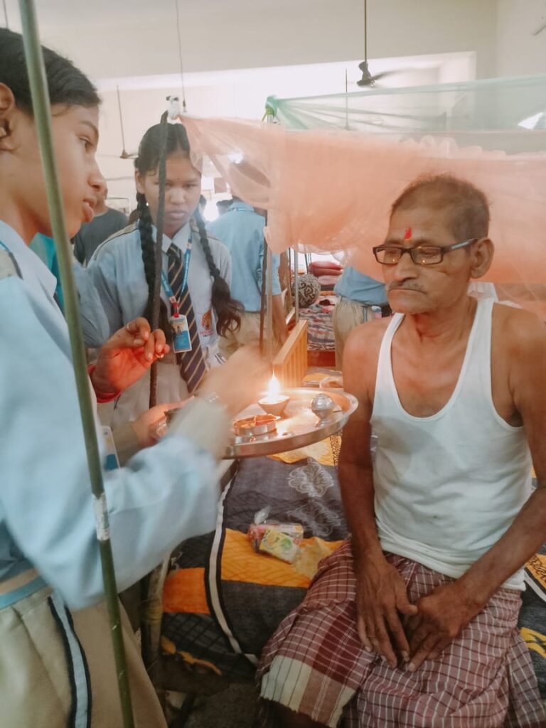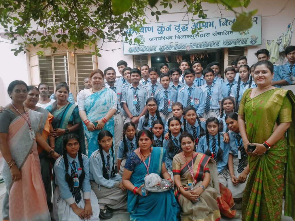 हमारे विद्यालय के तरफ से स्मृति चिन्ह और कुछ उपहार वृद्ध जनों को भेट स्वरूप दिया गया। विद्यालय का उद्देश्य बच्चों में बड़ों के प्रति सम्मान की भावना को बनाए रखना है ।आधुनिक जीवन में बच्चे बड़े बड़ों से दूर और सोशल मीडिया के करीब होते जा रहे हैं शायद जिनका परिणाम ही यह वृद्ध आश्रम होते हैं वही आश्रम के कुछ सदस्यों ने अपनी दुखद दास्तां बच्चों के साथ साझा किया जिन्हे सुन सभी का दिल रो दिया किस तरह बच्चे अपने माता पिता का भरन पोषण करने में असमर्थ है ये देख सभी की आंखे नम हो गई कुछ दादाजी ने अपने पुराने किस्सो से बच्चों का मन मोह लिया दादियो के द्वारा बेहतरीन गायन भी बच्चो के लिए किया गया कश्यप दादा जी ने भी बच्चो को ढेर सारे किस्से सुनाए।शाला संस्थापक डॉ अशोक पांडे जी ने कहा कि बच्चों को बड़ों का सम्मान सदैव करना चाहिए वही शाला प्राचार्या डॉक्टर मीनू पांडे जी ने बच्चों को संस्कार पूर्ण रहने की सलाह दी वहीं उप प्राचार्य डॉक्टर एकता शुक्ला जी ने सही मायने में पितृ मोक्ष का मतलब वह महत्व बच्चों को समझाया। इस कार्यक्रम में शाला के शिक्षक शिक्षिका रामा मिश्रा, प्रीति शर्मा, श्रद्धा गुप्ता ,राहुल देवांगन प्रतिभा गुप्ता का मार्गदर्शन बच्चों के लिए सराहनीय रहा।