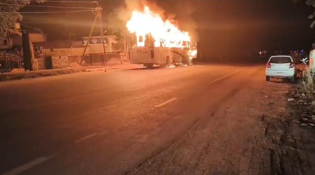 आग से दो महिलाएं और दो पुरुष झुलस गए। इलाज के लिए सभी घायलों को पास के अस्पताल में भर्ती कराया गया है.घटना की जानकारी मिलते ही पुलिस मौके पर पहुंची और यात्रियों सुरक्षित बाहर निकाला। बस में आग लग गई और वह पूरी तरह जल गई. बता दें कि रायपुर से जगदलपुर जा रही बस में लगभग तीस लोग सवार थे।