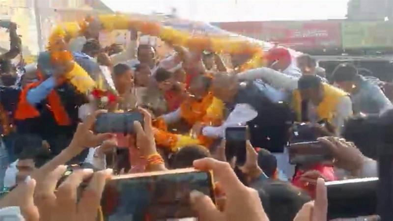 उपमुख्यमंत्री अरुण शाव मंच से गिरे बाल बाल बचे स्वागत कार्यक्रम के दौरान क्षमता से अधिक लोग मंच पर चढ़ गए.