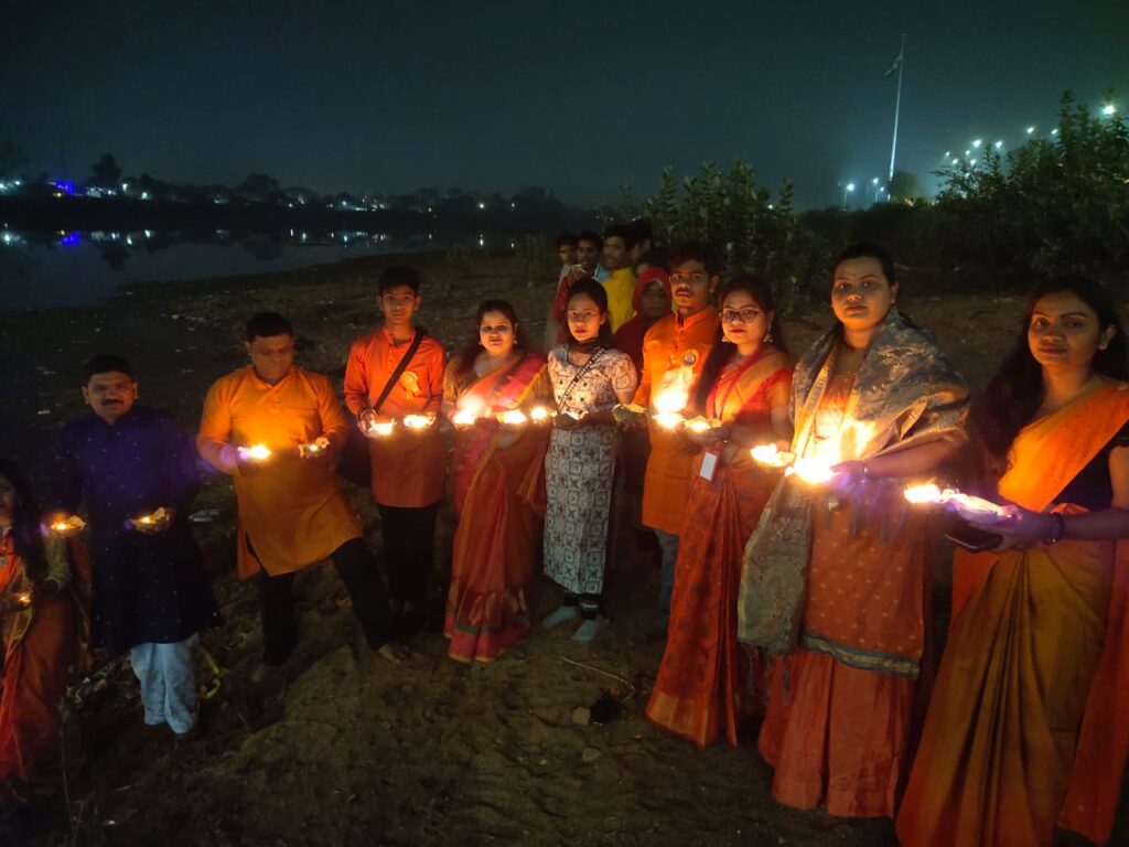श्रीसूर्या पुष्पा फाउंडेशन द्वारा अयोध्या श्रीराम नगरी में रामलला के प्राण प्रतिष्ठा के अवसर पर रिवरयु सरकंडा में दीपदान किया गया जिसमें सैकड़ो लोगो ने सहभागिता निभाई सभी के मन मे राम के प्रति स्नेह प्यार दिखा सभी ने एक स्वर में नारा लगाया जय श्रीराम और दीपदान किया फाउंडेशन के डायरेक्टर गौरव शुक्ला ने बताया 2 वर्षों के कार्यकाल में अनेक एक्टिविटी हुई पर आज हृदय से जो दीपदान करके मिल रहा है इसको बया करना अकल्पनीय है श्रीराम हमारे रोम रोम में हैं फाउंडेशन के सभी सदस्यों ने बड़चकर हिस्सा लिया ओर हनुमान चालीसा भी पढ़ा गया फाउंडर पुष्पा शुक्ला द्वारा राधव साहू को अनुभव प्रमाण पत्र दिया गया। ओर अयोजन को सफल बनाया गया इसी कड़ी में फाउंडेशन की नई मेम्बर मेहा को सर्टिफिकेट डायरेक्टर गौरव शुक्ला व टीम द्वारा सौपा गया सफल अयोजन में सभी बिलासपुर के नगर वासी मौजूद थे ओर जो फाउंडेशन के सक्रिय मेम्बर थे उसमें आमना राहगीर मेहा जया साहू चन्द्रकान्ता टिकेश्वर शाव संजू यादव अभिनव राधव साहू पायल नामदेव सौरभ राजगीर हेमंत राजगीर थे।