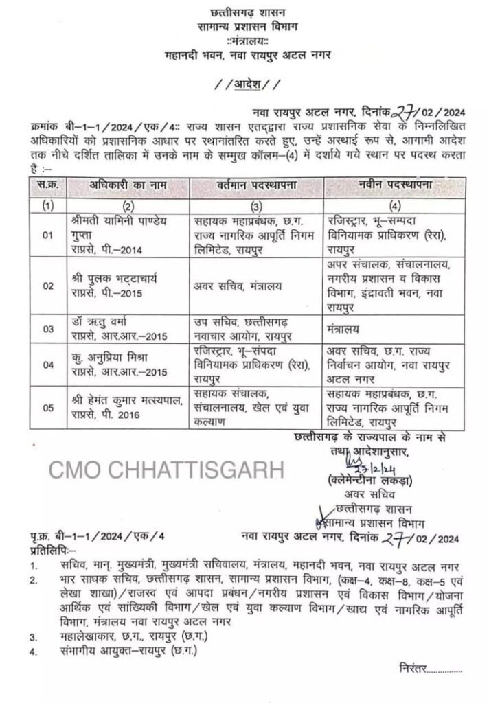 प्राशनिक अधिकारियों का हुआ तबादला देखे आदेश की कॉपी