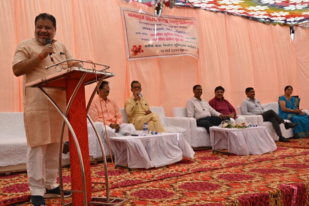 रायपुर। कान्यकुब्ज ब्राह्मण समाज रायपुर द्वारा संचालित पं. मुन्नालाल शुक्ल स्मृति आशीर्वाद इंग्लिश हायर सेकेंडरी स्कूल बैरन बाजार में प्रदत्त सांसद निधि द्वारा नवीन कक्ष निर्माण का आज भूमिपूजन कार्यक्रम आयोजित किया गया। कार्यक्रम में मुख्य अतिथि श्री सुनील सोनी जी सांसद रायपुर एवं अध्यक्षता श्री प्रमोद दुबे सभापति नगर पालिक निगम रायपुर उपस्थित रहे। भूमिपूजन का कार्यक्रम पंडित जी के द्वारा मंत्रोपचार के साथ श्री सुनील सोनी सांसद एवं श्री प्रमोद दुबे सभापति नगर पालिक निगम रायपुर, समाज के अध्यक्ष अरूण शुक्ल एवं सचिव सुरेश मिश्र, समाज के पदाधिकारी एवं समाज के वरिष्ठ सदस्य एवं स्कूल के बच्चों एवं स्कूल स्टाफ की उपस्थिति में संपन्न हुआ। सांसद श्री सुनील सोनी जी ने अपने उद्बोधन में देश में नई शिक्षा नीति पर बताया कि अब छात्र अपनी क्षेत्रिय भाषा में भी पढ़ सकते है, उन्होने स्कूली बच्चों से कहा कि वे जब घर से निकले तो पहले घर के बड़ों का आशीर्वाद लेकर निकले उससे और उर्जा मिलती है और जीवन में हमेशा सत्य बोलें।