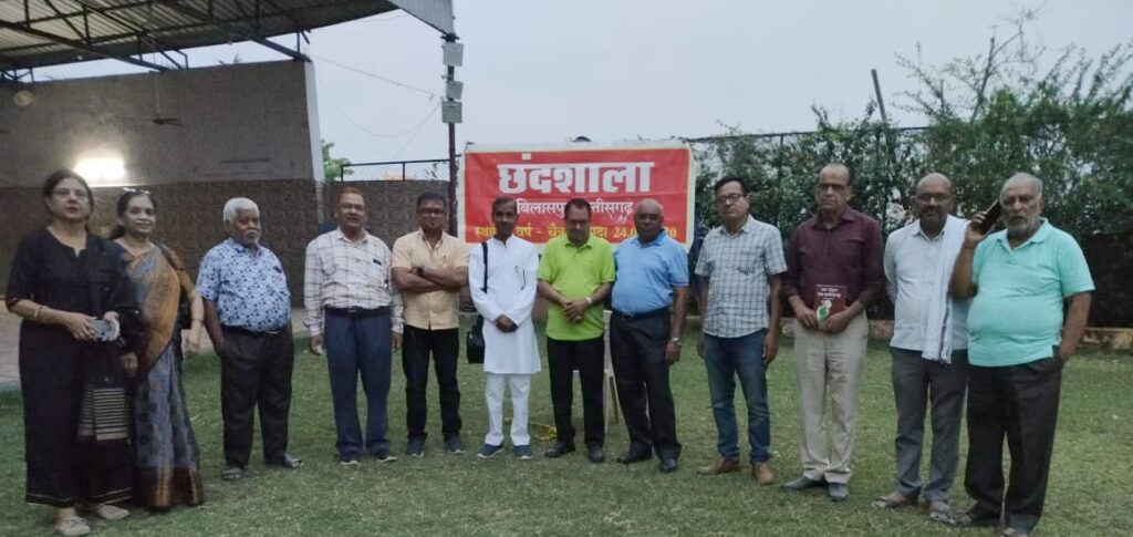सर्वप्रथम बैठक की शुरुआत छंदशाला के स्थापना दिवस आयोजित करने संबंधी चर्चा से हुई। आपको बता दें कि वैश्विक आपदा काल में छंदशाला की स्थापना हुई थी और प्रतिवर्ष 24 मार्च को इसका स्थापना दिवस मनाया जाता है।प्रथम स्थापना दिवस सिद्ध आश्रम मेऊभाटा में , द्वितीय स्थापना दिवस रेशम अनुसंधान केन्द्र मेड्रापारा में,और तृतीय स्थापना दिवस यज्ञ शाला खैरा में मनाया गया है।आगामी 24 मार्च को छंदशाला का चतुर्थ स्थापना दिवस है उसे मनाने संबंधित चर्चा इस बैठक में की गई और होलिका दहन के कारण स्थापना दिवस 29मार्च को अर्धनारीश्वर धाम दूल्हा में मनाने का विचार सर्वसम्मति से किया गया। आयोजन संबंधी आवश्यक चर्चा के बाद काव्य गोष्ठी का दौर शुरू हुआ। जिसमें कवि अवधेश भारत ने तुम हमारी लाडली हो रहो सदा सुहागनी , कवि अमृत पाठक ने जो है भिखारी उनसे उपहार मांगते हो ,सतीश पांडेय उद्यान ने जैसे बसता है मोती सीपियों में,पी डी वैष्णव ने यादों में बचपन आता है ,मन को बहुत लुभाता है, शैलेंद्र गुप्ता ने त्रेता के सुख बैग लिए है अब द्वापर में जाना है ,विनय पाठक ने अंंबर झूमे मन इतराए ,हूप सिंह ठाकुर ने दीवारों से धूप उतरकर रोज फैलती आंगन में,सेवकरा साहू ने मुक्तक ,एम डी मानिकपुरी ने छत्तीसगढ़ी गीत ,सर्वेश पाठक ने दोहे लालच कभी न पालिये , वरिष्ठ कवि बुधराम यादव ने अगर चाहते उपर उड़ना निश्चित हो ध्यान, कवियत्री डॉ सुनीता मिश्रा ने पीड़ाओं में नैन बावरे क्यों खारा जल बरसाते हैं,वरिष्ठ कवि विजय तिवारी ने आम्र कुंज पर कोयल कूके मन भाये गीत गाकर काव्य रसधार बहाई ।