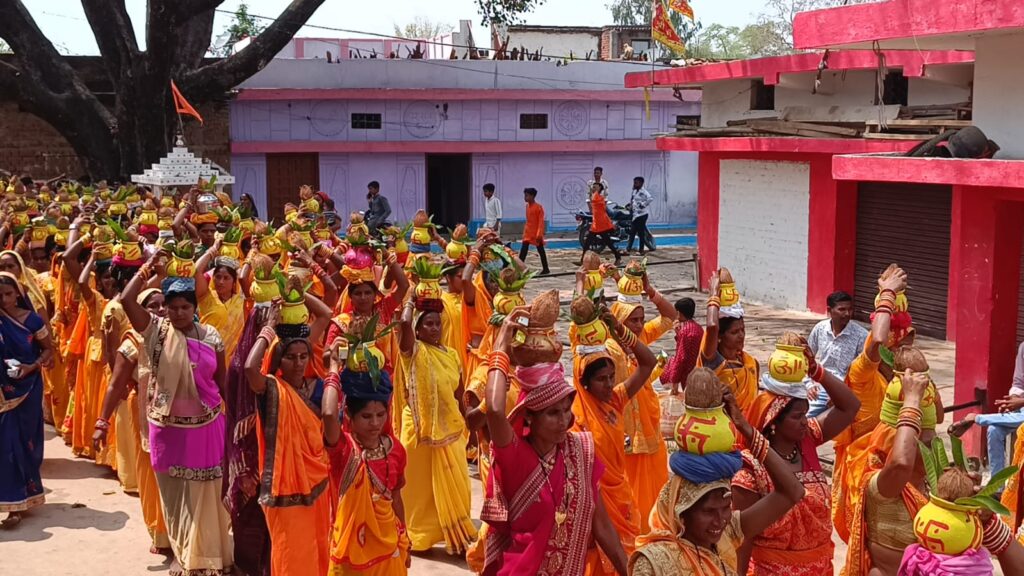 भव्य कलश शोभायात्रा के साथ ग्राम भाड़म में हुआ श्री विष्णु महायज्ञ का शुभारम्भ