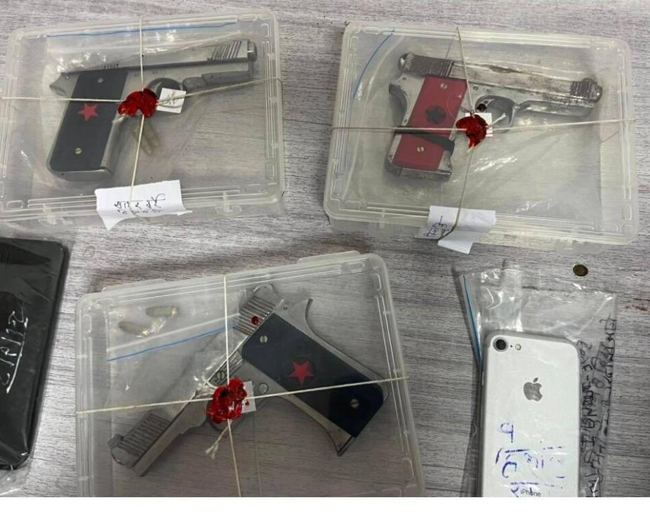 बिलासपुर। तीन पिस्टल,जिंदा कारतूस, तथा देशी कट्टा के साथ दो आरोपियों को सिविल लाइन पुलिस द्वारा गिरफ्तार किया गया बिलासा नगरी में मामले का खुलासा करते हुए बिलासपुर कप्तान रजनेश सिंह ने जानकारी दी लगातार मुखबीर से सूचना प्राप्त हो रही थी कि मिनीबस्ती जतिया तालाब के पास कुछ लोग पिस्टल रखकर किसी गंभीर घटना को अंजाम देने के फिराक में है।मामले की तस्दीक के लिए अतिरिक्त पुलिस अधीक्षक उमेश कश्यप द्वारा एसीसीयू व थाना सिविल लाईन की टीम को मामले के संबंध में आदेशित किया गया। टीम द्वारा लगातार मिनीबस्ती जतिया तालाब एवं आसपास के क्षेत्र में नजर रखी गई थी।दिनाँक 05/04/2024 को मुखबीर से सूचना मिली कि मिनीबस्ती जरहाभाठा निवासी हिमांशु रात्रे उर्फ बिट्टू एवं सागर कुर्रे जतिया तालाब सुलभ के पास बैठे है। साथ ही अपने पास पिस्टल रखे है और किसी गंभीर घटना को अंजाम देने के फिराक में है।