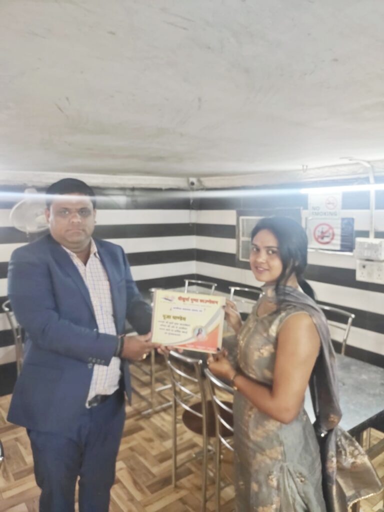 श्रीसूर्या पुष्पा फाउंडेशन के डायरेक्टर गौरव शुक्ला द्वारा रायपुर की प्रेसिडेंट पूजा पाण्डेय की नियुक्ति की गई सार्टिफिकेट id कार्ड दिया गया