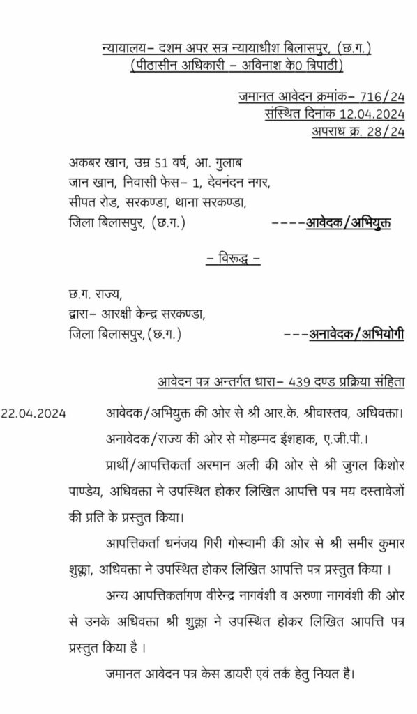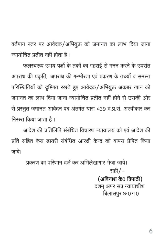 बड़ी खबर सेशन कोर्ट ने अकबर खान की जमानत याचिका खारिज कर दी देखे कोर्ट का आदेश में क्या लिखा है