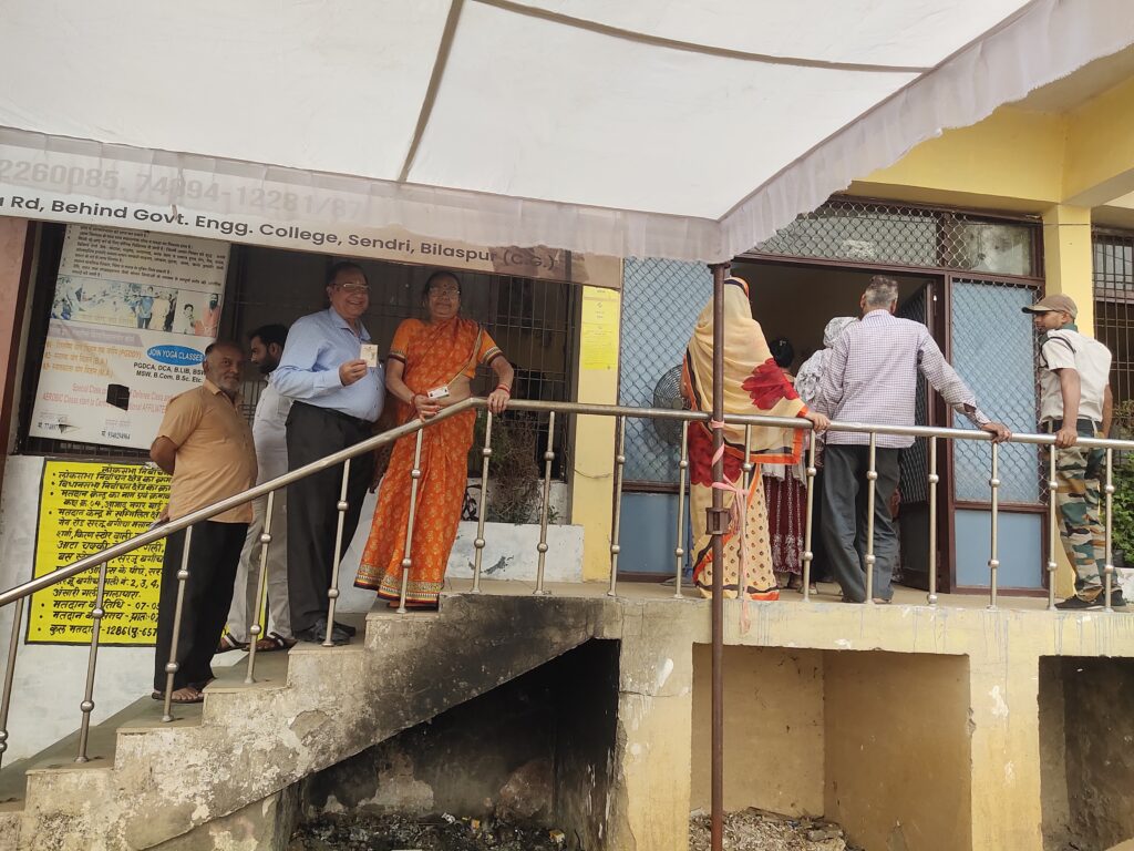 राजा रघुराज सिंह स्टेडियम में सुबह 7 :00 बजे से मतदान करने के लिए लोगों की कतार लग गई है लोगों में उत्साह देखने को मिल रहा है कहते हैं कि अपने मत का प्रयोग हर किसी को करना चाहिए जो 18 वर्ष से ऊपर है और इसी कड़ी में आज सभी युवा से लेकर बुजुर्ग भी बढ़-चढ़कर हिस्सा ले रहे हैं और अपने जनप्रतिनिधि को चुनने के लिए सुबह से लाइन में लगकर मतदान करने के लिए पहुँच गए है और पुलिस प्रशासन राजस्व विभाग की टीम सभी अपने कर्तव्य का पालन करते हुए मतदान केंद्रों में डटे हैं जिला प्रशासन द्वारा शत प्रतिशत मतदान करने की अपील का असर भी मतदान केदो में दिखाई दे रहा है बिलासपुर पुलिस द्वारा पूरी निष्ठा के साथ पुलिसकर्मी मतदान केंद्र में जुटे हैं ।