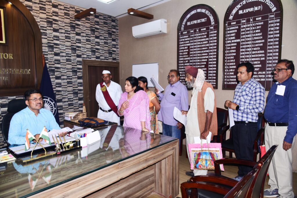 बिलासपुर, 24 जून 2024/तीन माह के अंतराल के बाद आम जनता से मुलाकात का साप्ताहिक कार्यक्रम जनदर्शन चुनावी आचार संहिता समाप्त होेने के बाद आज फिर से शुरू हो गया। कलेक्टर श्री अवनीश शरण ने आज साप्ताहिक जनदर्शन में दूर-दराज से आये ग्रामीणों, किसानों, बुजुुर्गाे और महिलाओं की समस्याओं को बड़े इत्मीनान से सुना। उन्होंने किसानों से चर्चा कर खेती-किसानी और पर्याप्त खाद-बीज की उपलब्धता के बारे में जानकारी ली। जनदर्शन में कुछ समस्याओं का निराकरण मौके पर ही किया गया और कुछ समस्याओं के जल्द निराकरण के लिए कलेक्टर ने अधिकारियों को निर्देश दिए। आज जनदर्शन में लगभग सौ लोगों ने कलेक्टर से मिलकर निजी एवं सामुदायिक समस्याओं से संबंधित आवेदन दिए।