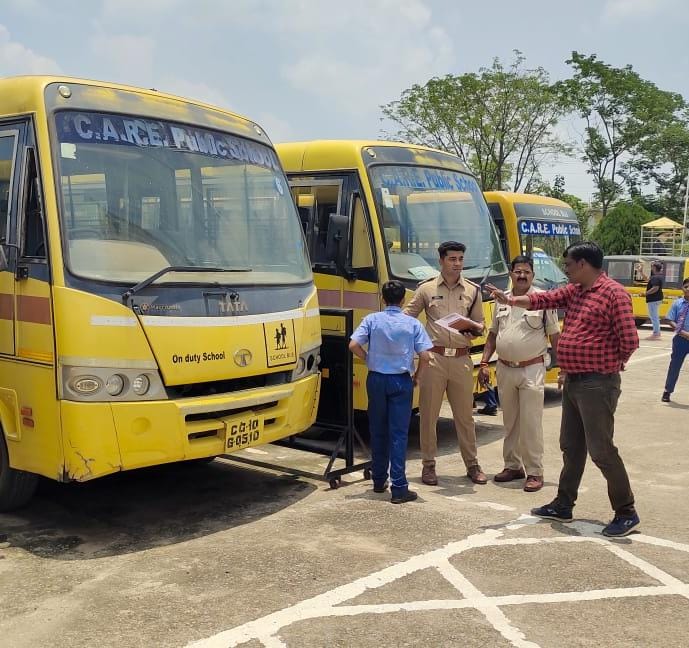 *अतिरिक्त पुलिस अधीक्षक यातायात श्री नीरज चंद्राकर सर ने बताया कि-नए शैक्षणिक सत्र 2024- 25 प्रारंभ हो चुका है, विभिन्न स्कूलों में चलने वाली स्कूली बस आदि वाहन निर्धारित सुरक्षा मापदंड के अनुरूप है कि नहीं, का निरीक्षण एवं सभी जरूरी दस्तावेज, सुरक्षा के मापदंड को स्कूलों में जा कर आकस्मिक भौतिक निरीक्षण किए जाने हेतु, परिवहन विभाग के अधिकारी एवं यातायात पुलिस के निरीक्षक हेमवंत चंद्राकर, निरीक्षक लक्ष्मी चौहान एवं डी0डी0 सिंह की टीम बनाई गई है, जो की चार दिवस 27 जून से 30 जून तक निरंतर स्कूल बसों की जांच करेंगी, इसके साथ ही स्कूलों में चलने वाले स्कूल वैन एवं ऑटो जो की क्षमता से अधिक स्कूली बच्चों का परिवहन करते हैं, उन पर भी हमारी कड़ी नजर है, जिन पर आगामी दिनों में कार्यवाही की जाएगी।*