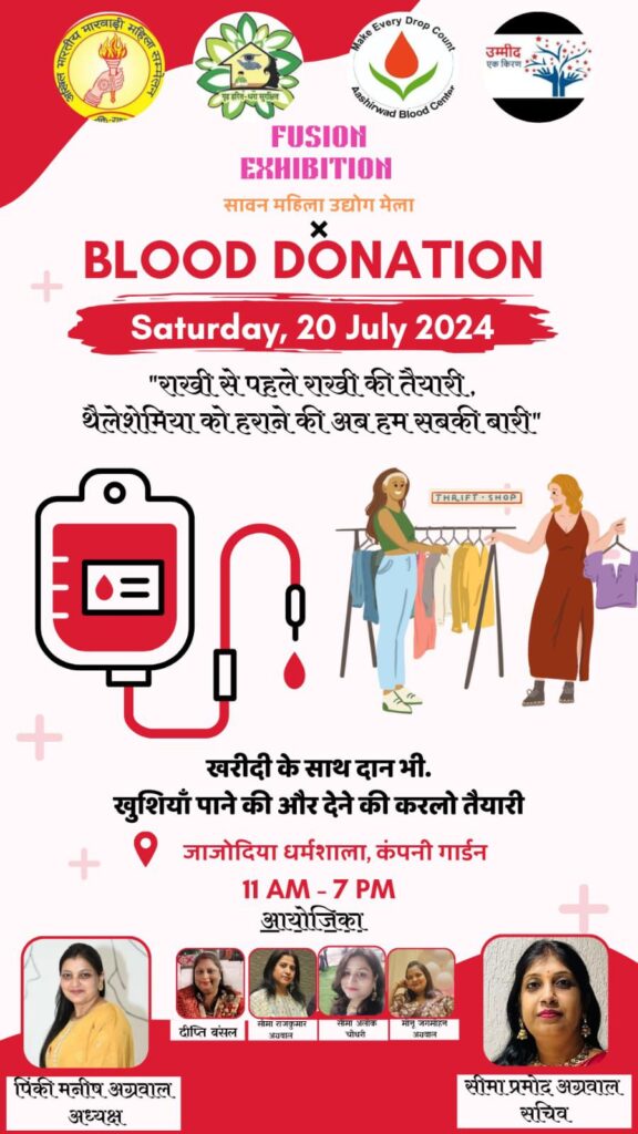 आप सभी बिलासपुर वासियो से अनुरोध है ज्यादा से ज्यादा आकर इस नेक कार्य को अपना सपोर्ट दें अखिल भारतीय मारवाड़ी महिला सम्मलेन के तत्वाधान में बिलासपुर जाजोदिया भवन कंपनी गार्डन के पास सावन महिला उद्योग मेला व रक्तदान शिविर का आयोजन