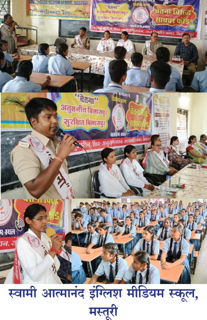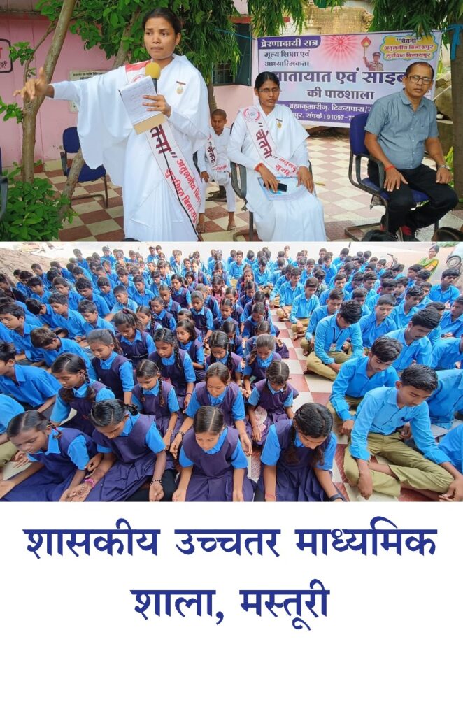 मस्तूरी के तीन स्कूल – शासकीय बालक पूर्व माध्यमिक, उच्चतर माध्यमिक, शासकीय कन्या उच्चतर माध्यमिक एवं स्वामी आत्मानंद इंग्लिश मीडियम स्कूल में लगाई गई साइबर एवं यातायात की पाठशाला, नवीन कानून के विषय में भी दी गई जानकारी।
