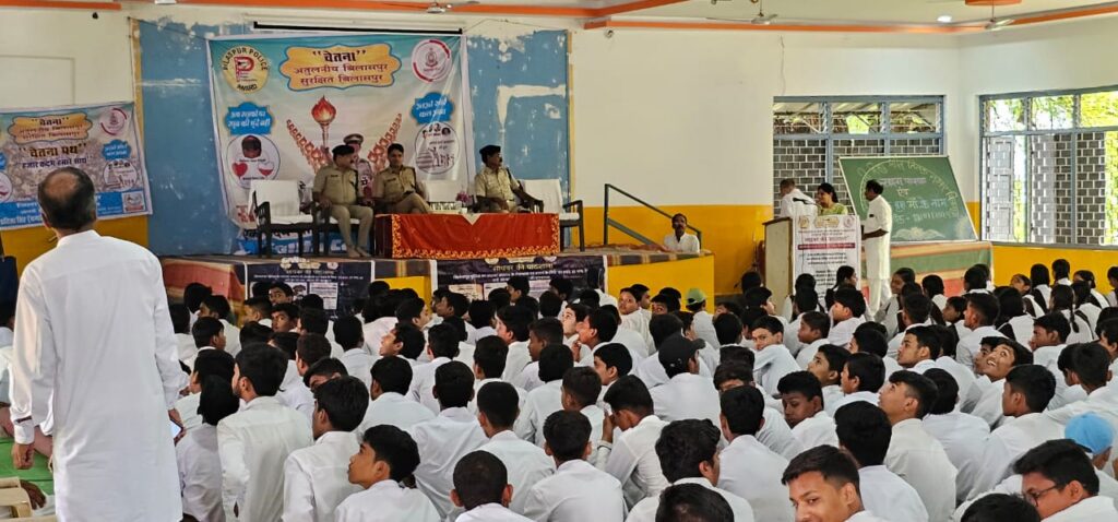 *(चेतना )अतुलनी बिलासपुर सुरक्षित बिलासपुर के तहत, एवं एक वृक्ष मां के नाम, अभियान के तहत देवकीनंदन चौक समीप स्थित सरस्वती शिशु मंदिर में दिन गुरुवार दिनांक 18/07/2024समय 3:00 से 4:40 में युथ फॉर नेशन के तत्वाधान में आयोजित की गई थी , जिसमें शहर ASP उमेश कश्यप जी,अतिरिक्त पुलिस अधीक्षक यातायात नीरज चंद्राकर जी, यातायात सब इंस्पेक्टर उमा शंकर पांडे जी, यूथ फाऱ नेशन की संस्थापिका प्रतिज्ञा सिंह जी राकेश पांडे जी प्रधान आचार्य जी,मजूमदार मैडम,चंचल सलूजा अभिमन्यु गोयल प्रतीक तिवारी, देवेश सिंह एवं शिक्षक गण उपस्थित उपस्थित रहें, साइबर कीज पाठशाला के, साथ ही यातायात सुरक्षा, एवं सेल्फ डिफेंस, करियर से संबंधित महत्वपूर्ण जानकारी के विषय में श्री उमेश कश्यप एवं नीरज चंद्राकर जी द्वारा जानकारी प्रदान की गई इस कार्यक्रम का लाभ लगभग 300 बालकों ने लिया, तत्पश्चात एक वृक्ष मां के नाम अभियान, के तहत शाला परिसर मे वृक्षारोपण का कार्यक्रम सम्पन्न हुवा ।